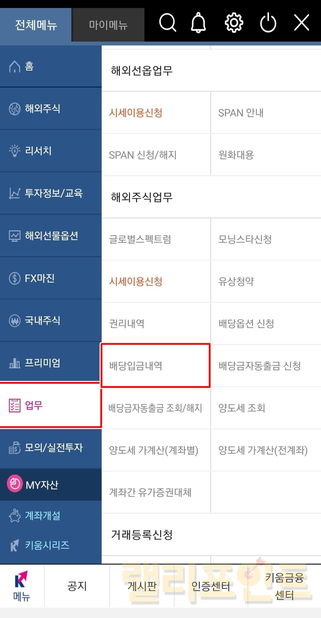 키움증권 해외주식 배당금 확인 방법