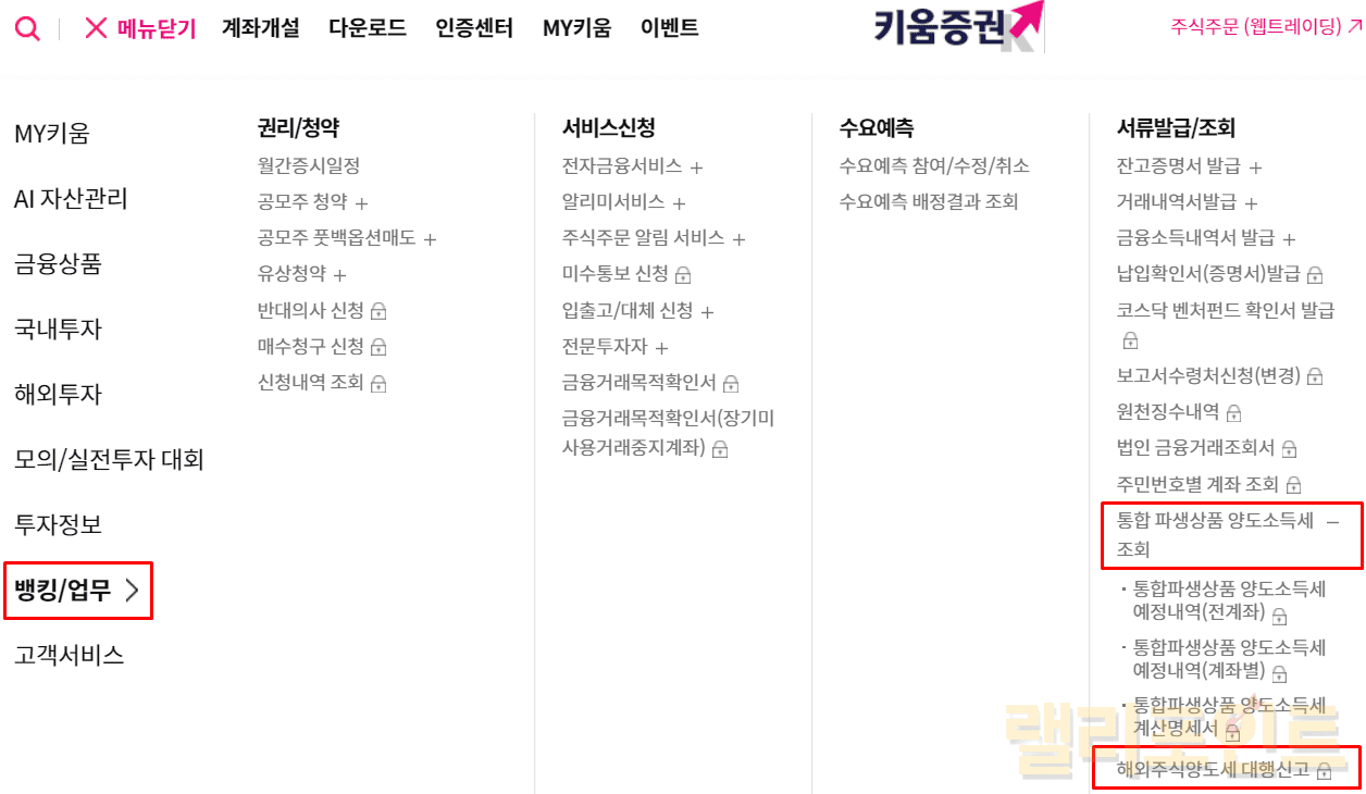 - 키움증권 해외주식 양도소득세 금액 조회 방법