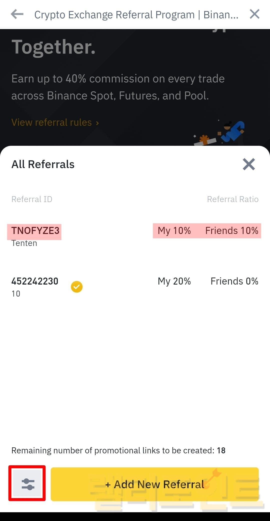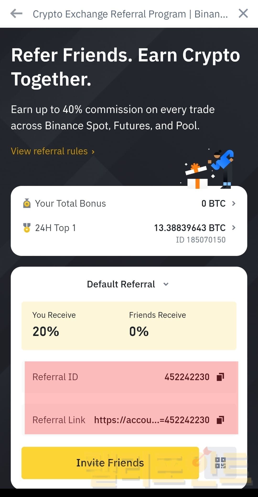 바이낸스 선물과 현물의 레퍼럴 코드는 서로 다르다.