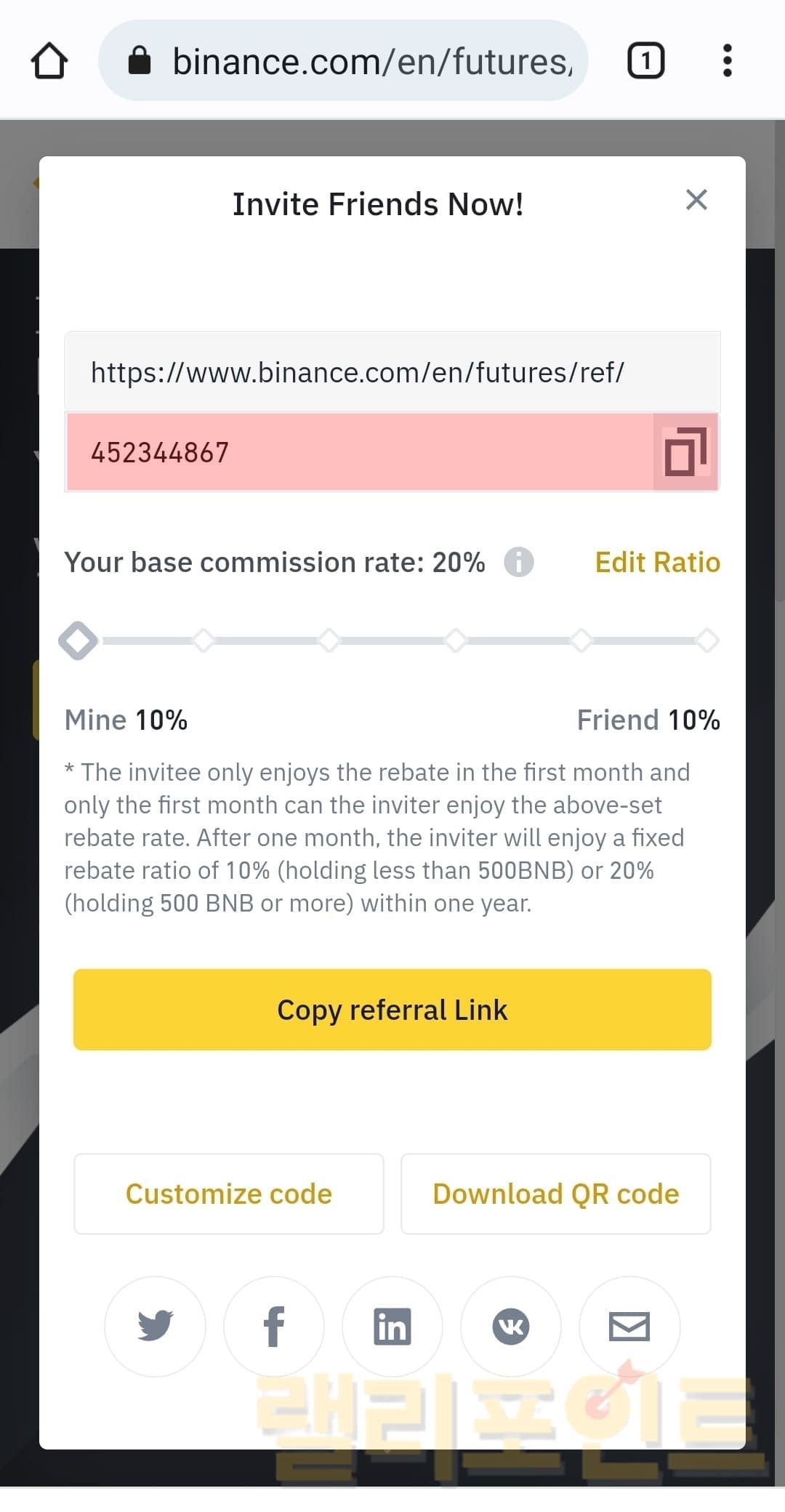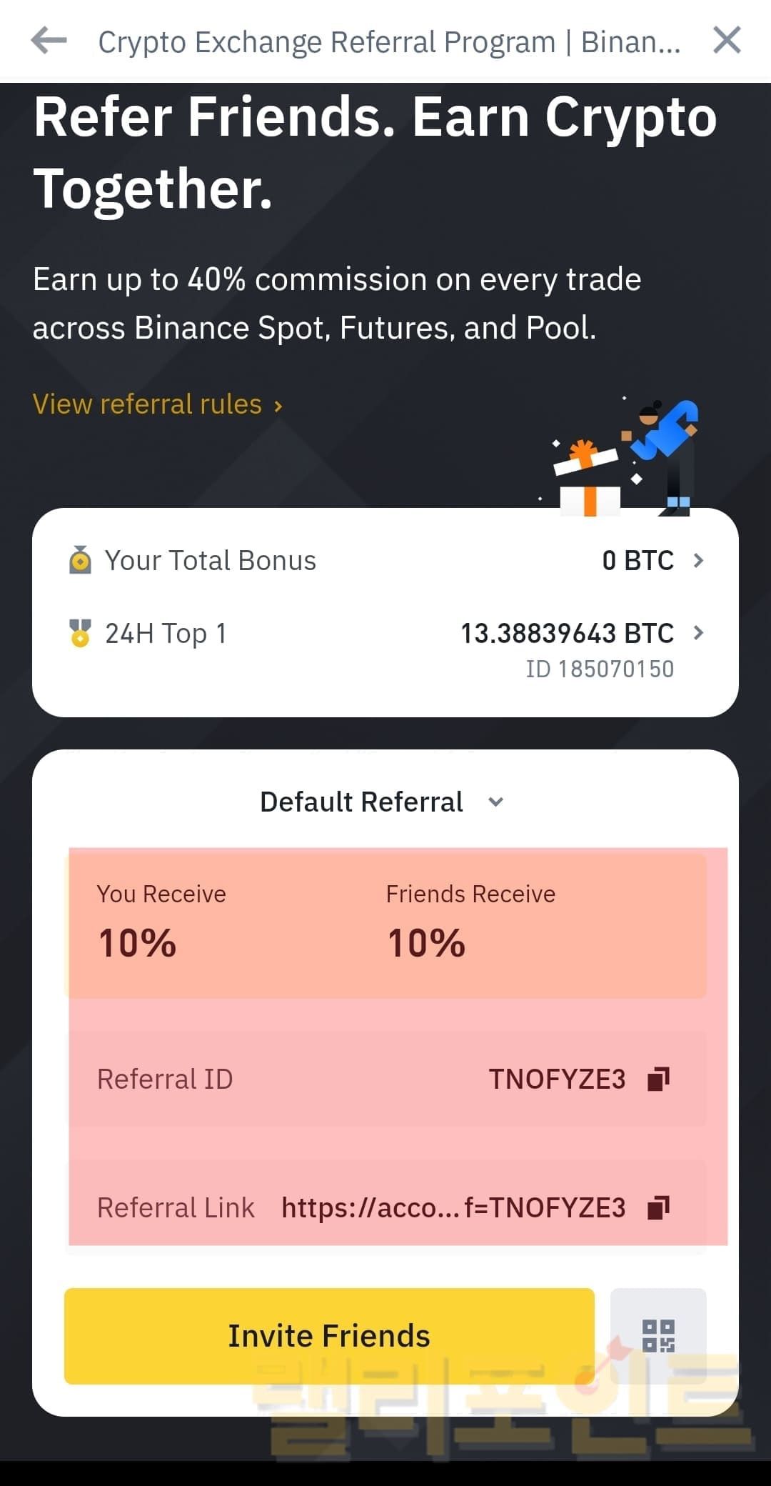 10%/10% 바이낸스 현물 레퍼럴 코드가 생성 됬습니다.