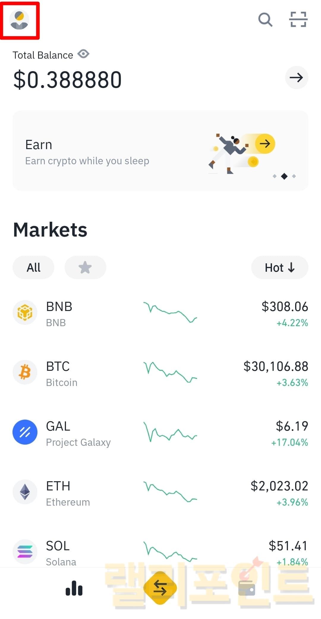 - 스마트폰에서 Binance 거래소 어플을 실행합니다.