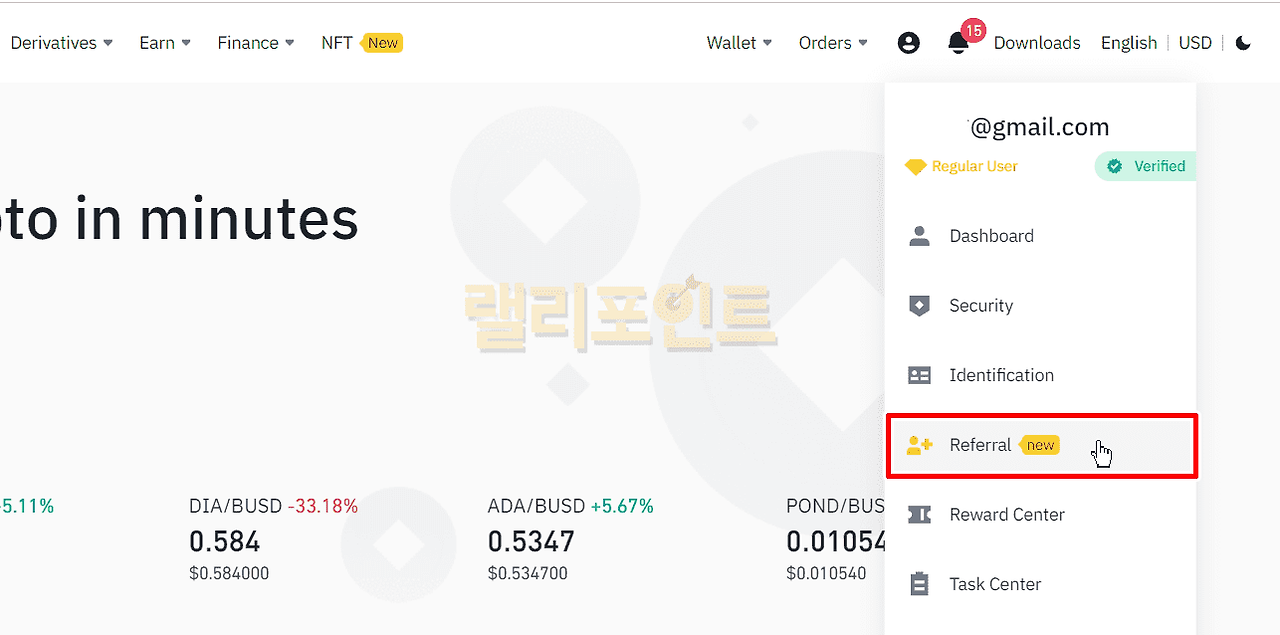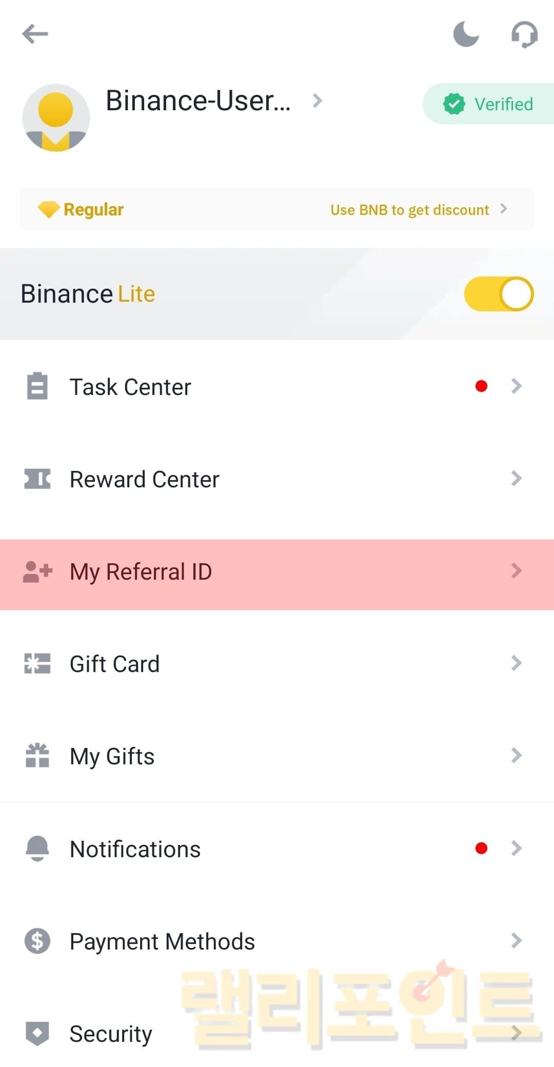 바이낸스 LITE 모드에서 레퍼럴 생성 방법
