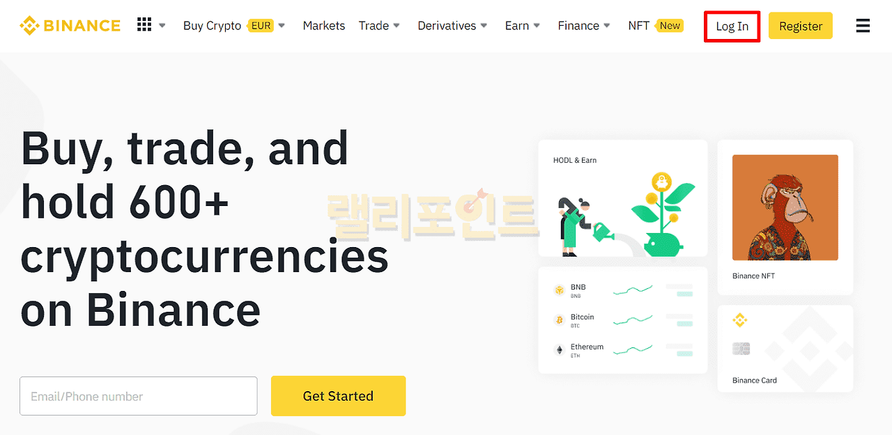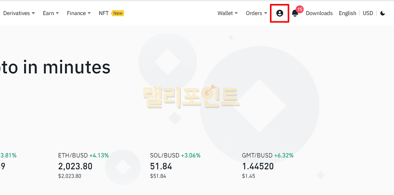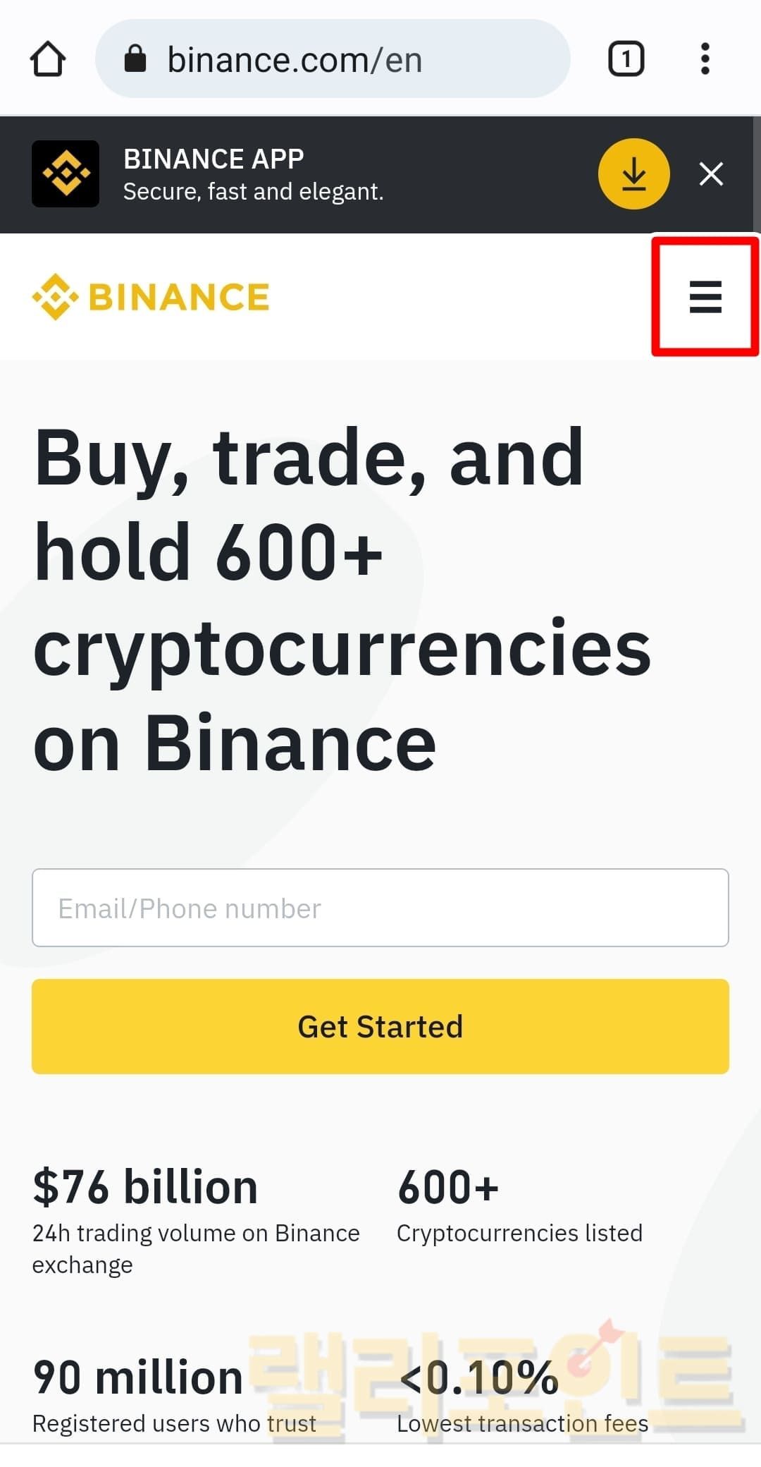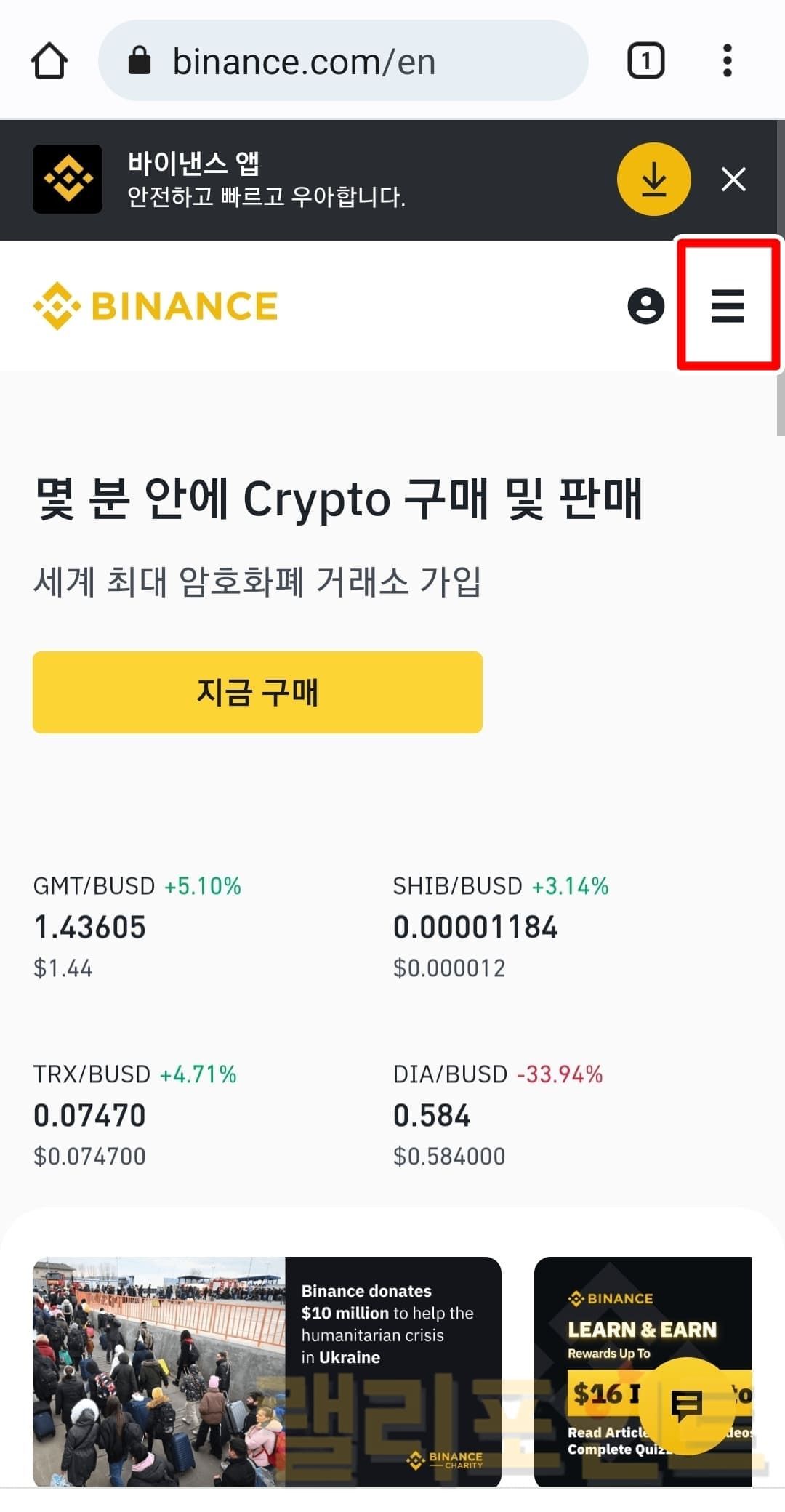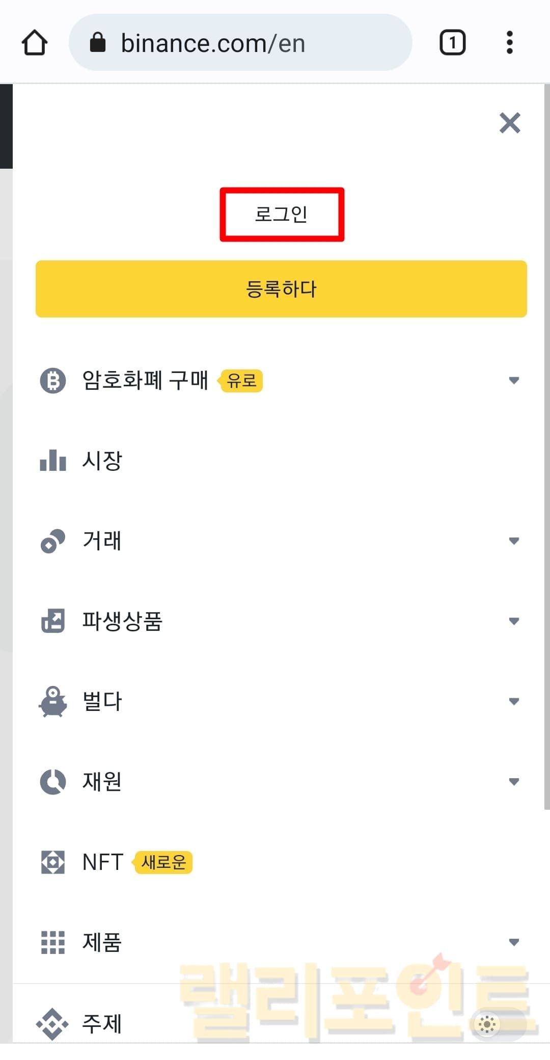 스마트폰 인터넷 앱에서 바이낸스 사이트를 실행합니다.