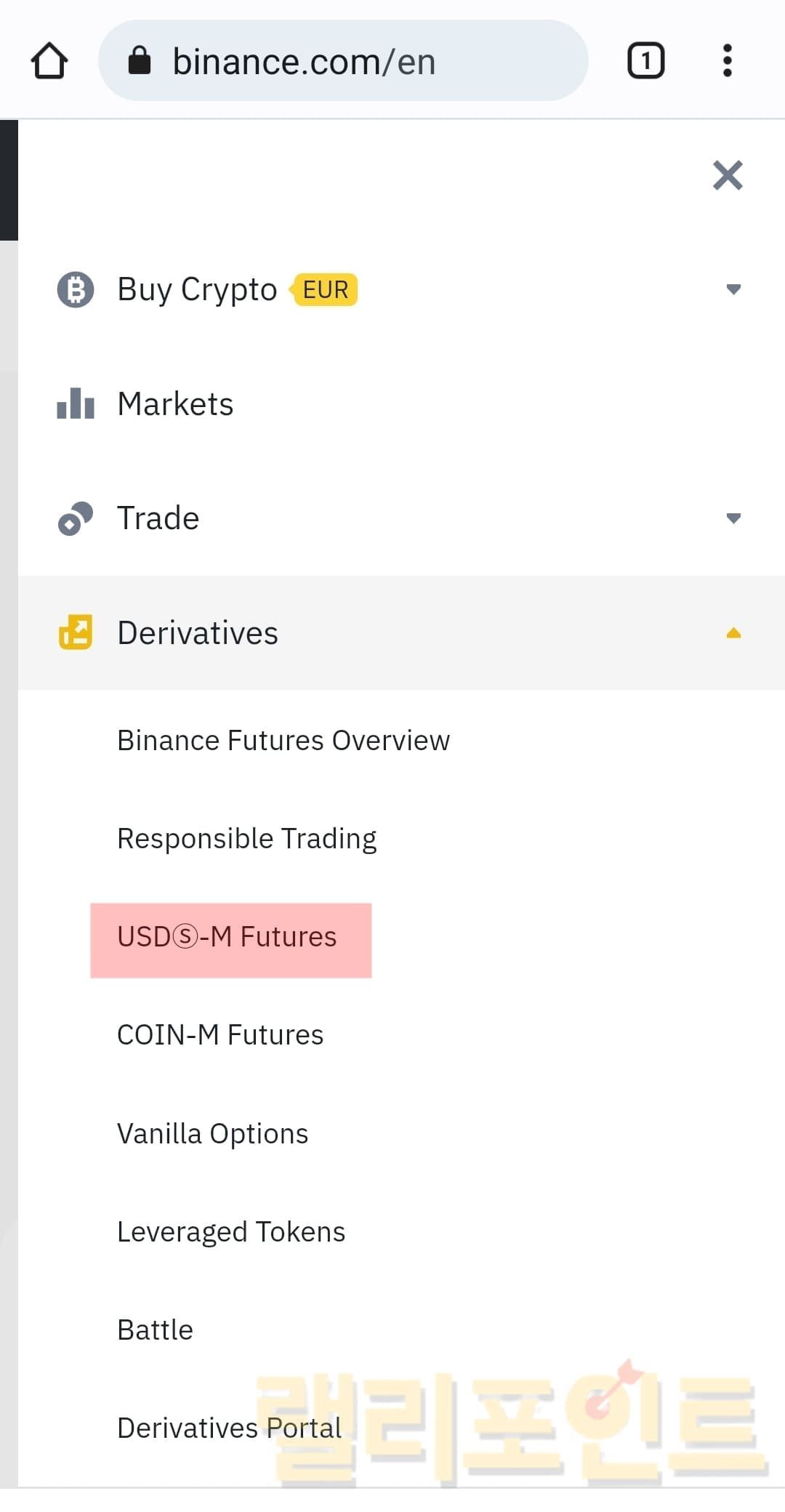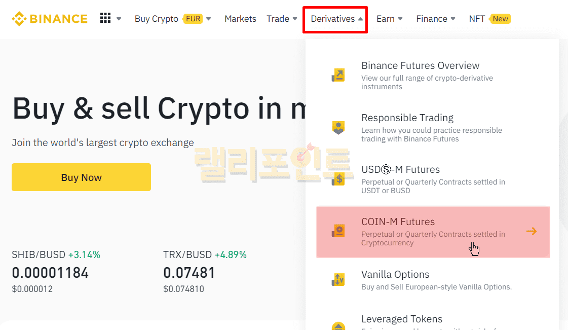 - Derivatives > COIN-M-Futures를 클릭합니다.