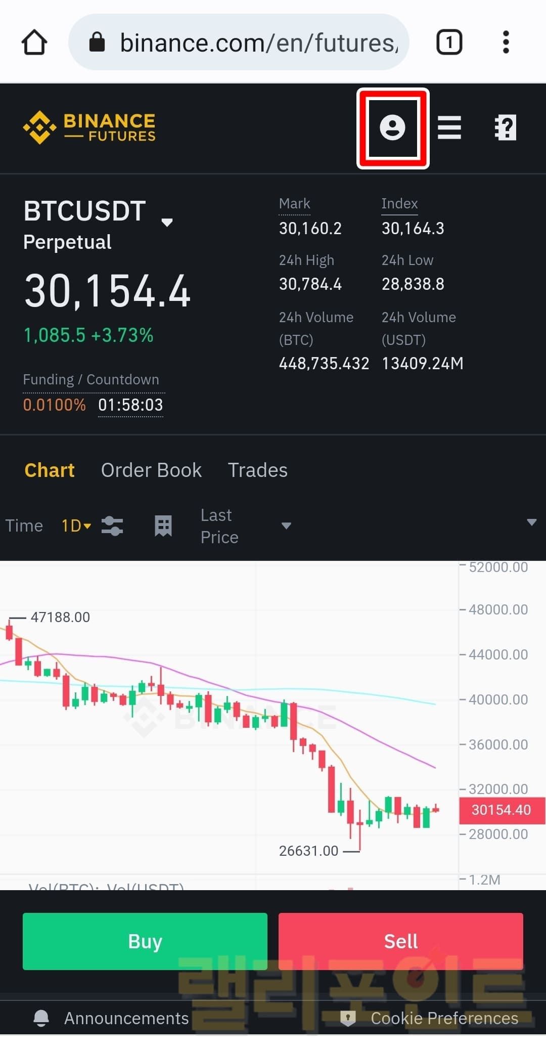 - 바이낸스 선물 트레이딩 화면에서 내 프로필을 클릭합니다.