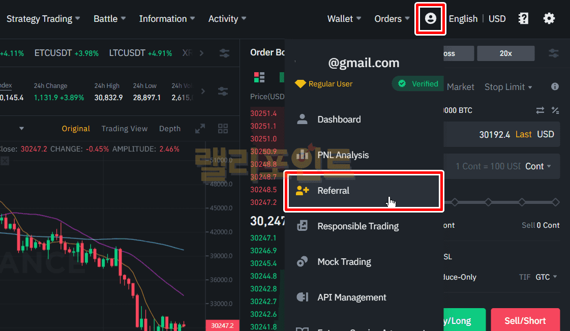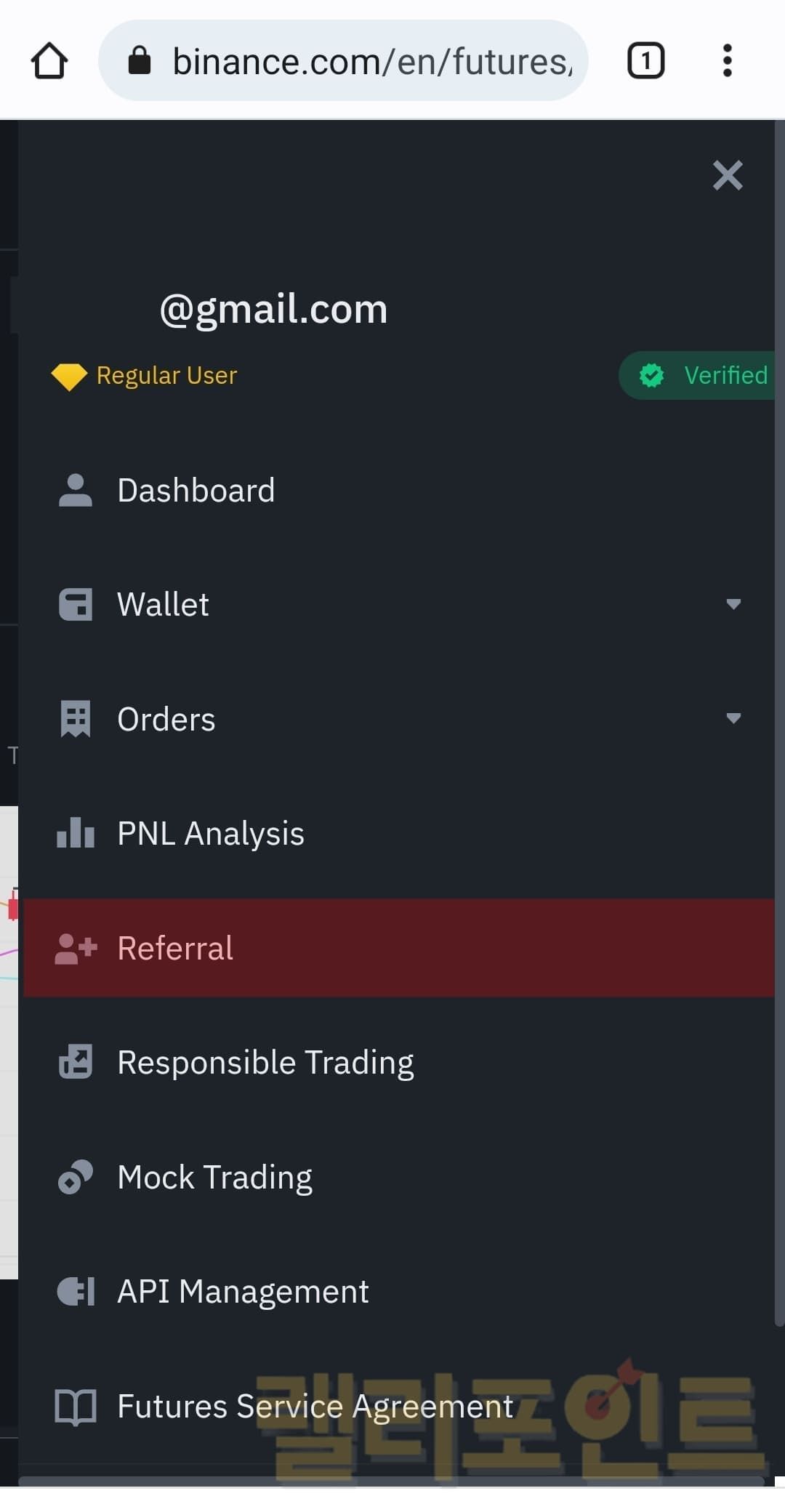 - 나의 바이낸스 선물 래퍼럴 코드를 확인합니다.