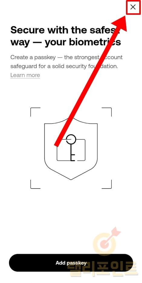- 패스키 안내에서 X를 눌러 닫습니다.