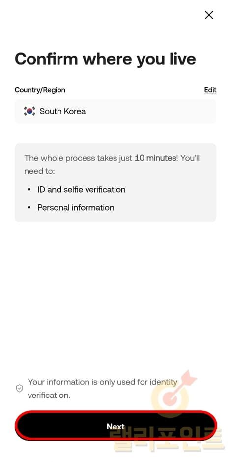- 국적에서 South Korea를 확인하고 Next를 클릭합니다.