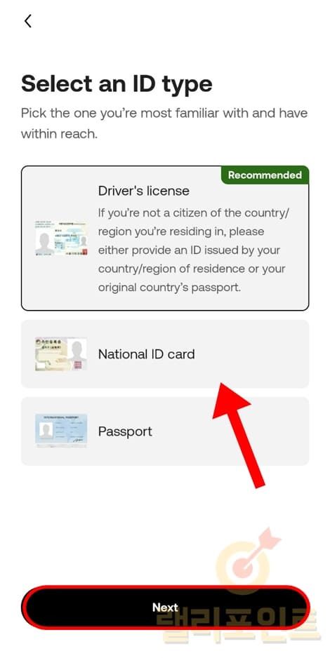 - 인증에 사용할 신분증을 하나 선택합니다.