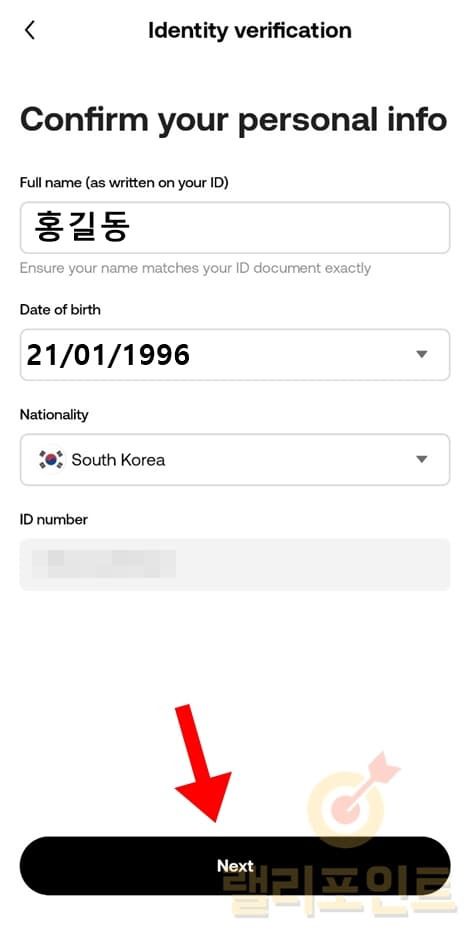 - 이름, 생년월일이 맞는지 확인한 후 Next를 누릅니다.