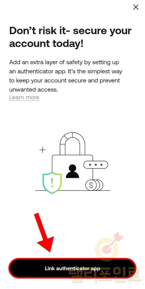 - Link authenticator app 버튼을 누릅니다.