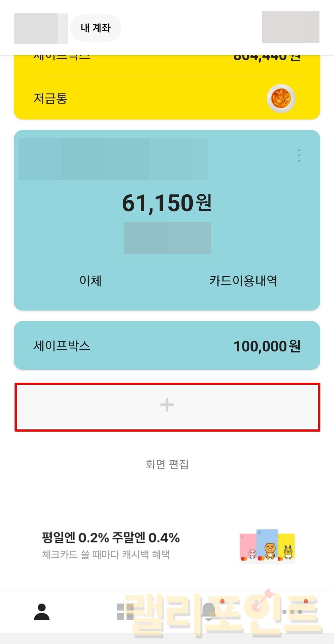 카카오뱅크 어플리케이션을 실행합니다.