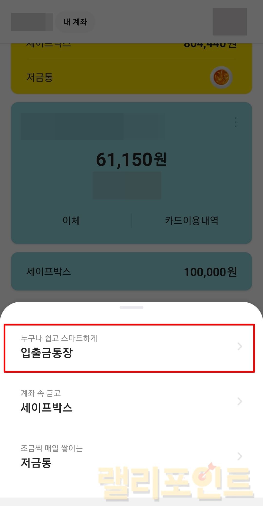 개설된 입출금통장을 누릅니다.