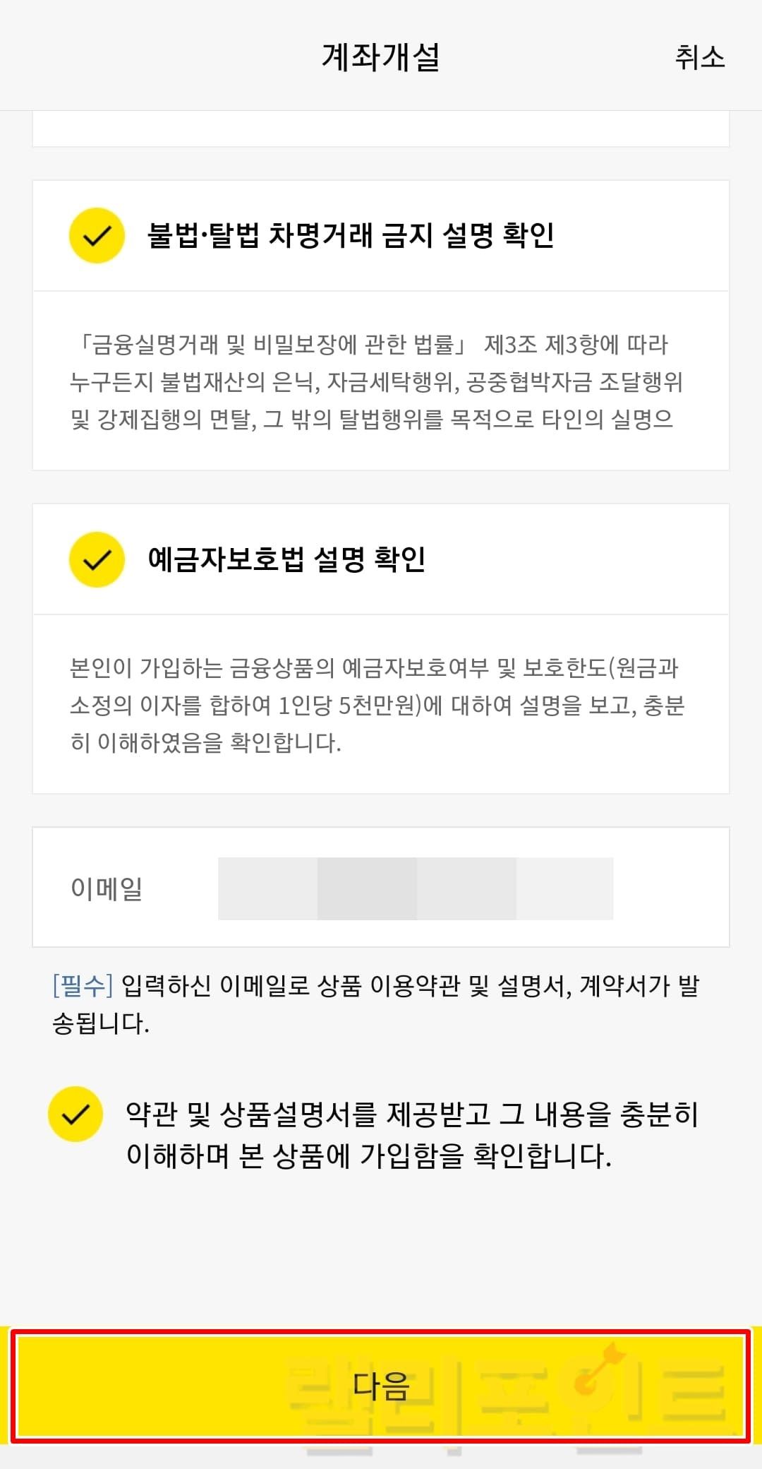 약관 동의 및 개인정보를 인증하여 입출금 계좌를 개설합니다.