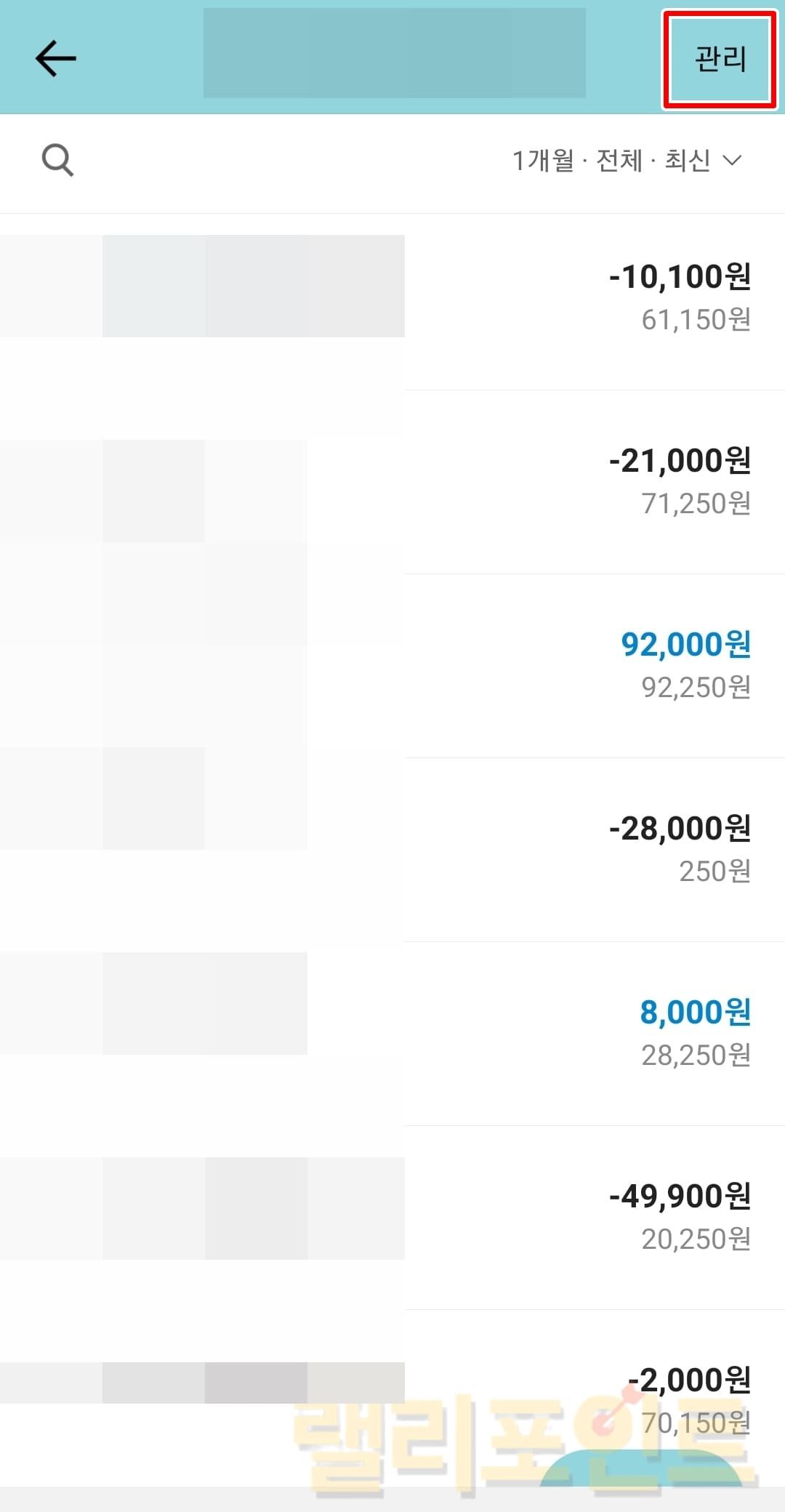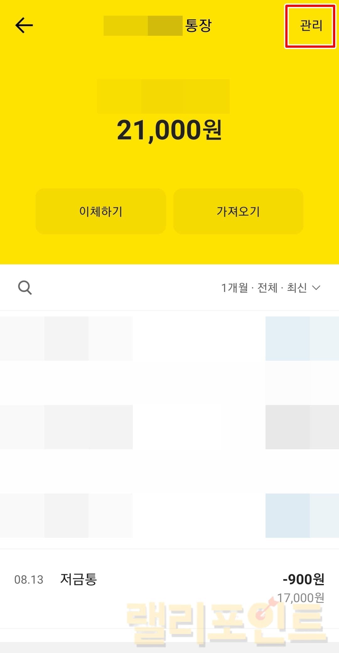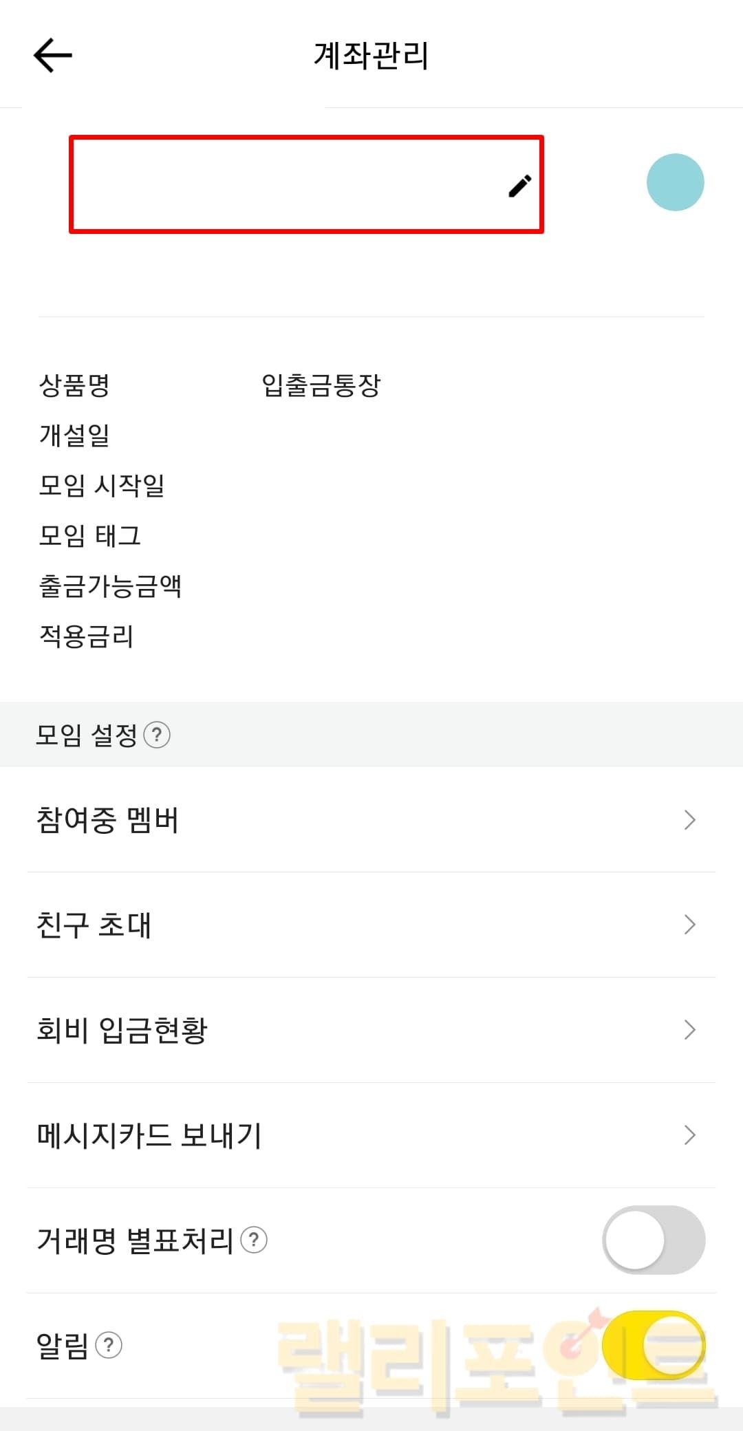 카카오뱅크 모임통장을 누르고 관리에 들어갑니다.