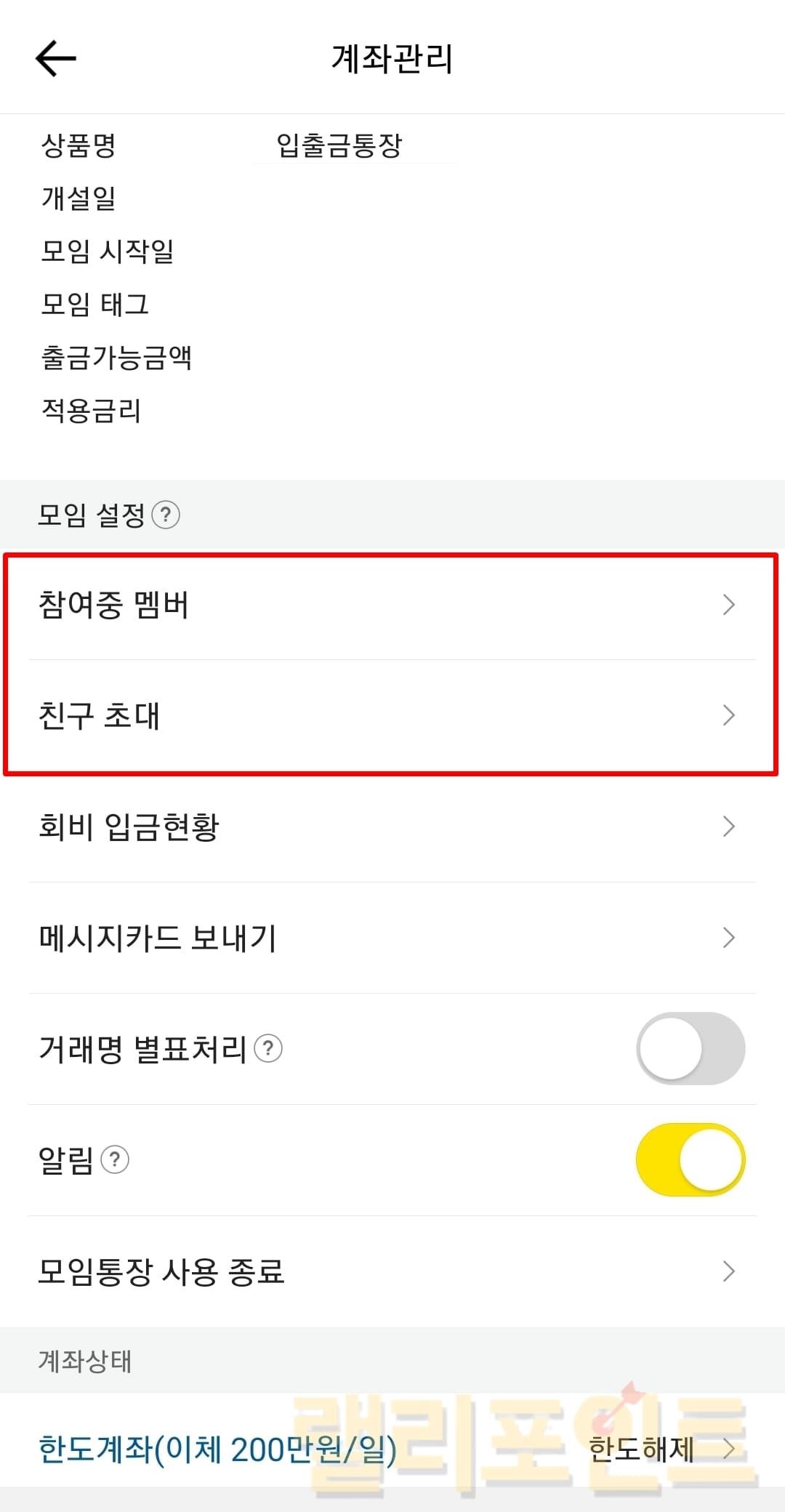 카카오뱅크 모임통장 사용법