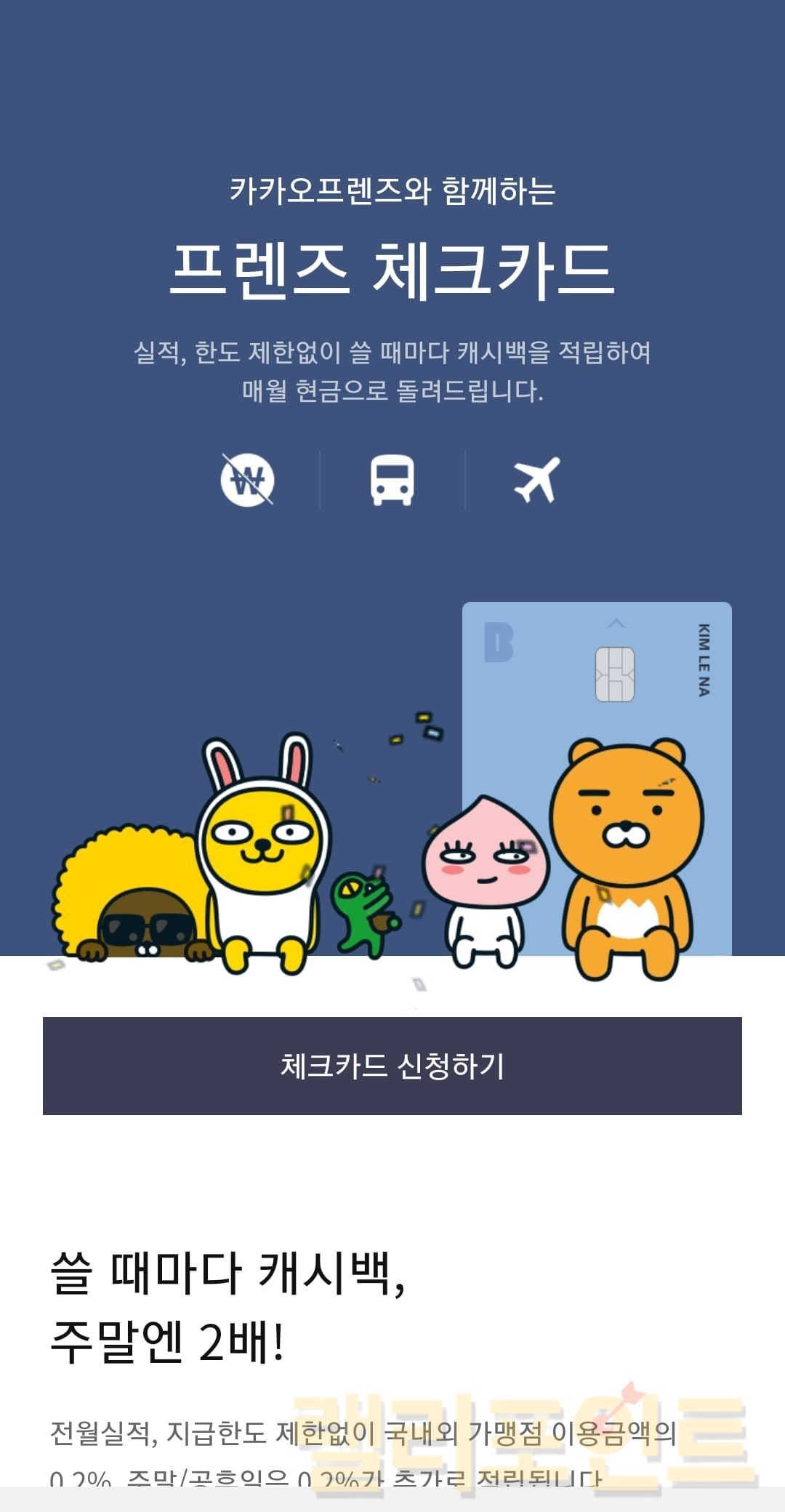 ② 카카오뱅크 모임통장은 체크카드를 신청할 수 있습니다. 모임장은 통장을 직접관리하며 계좌이체가 가능하지만 체크카드를 신청해서 공용지출에 카드결제가 가능해집니다. 단, 카카오뱅크 모임통장 카드 2개 발급은 불가능합니다.