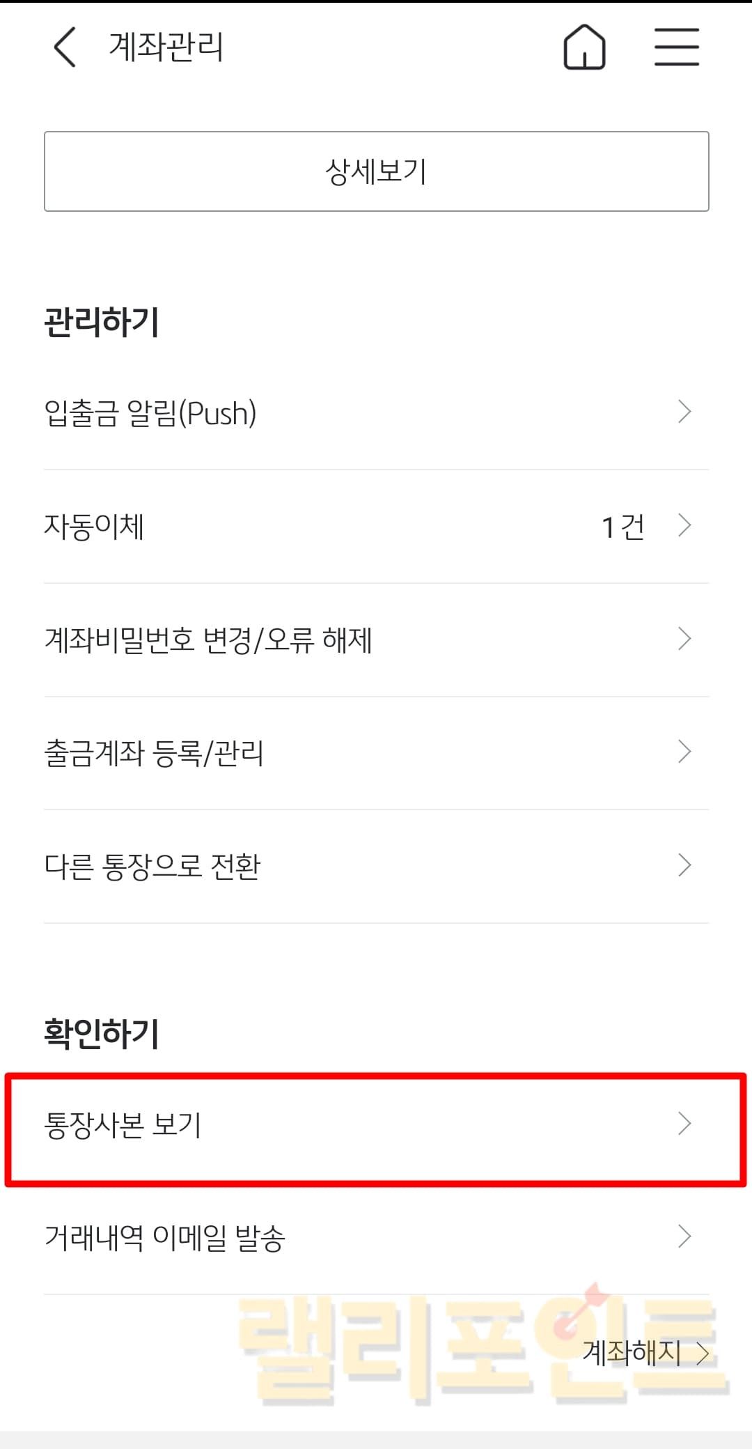 - 통장사본 보기를 클릭합니다.