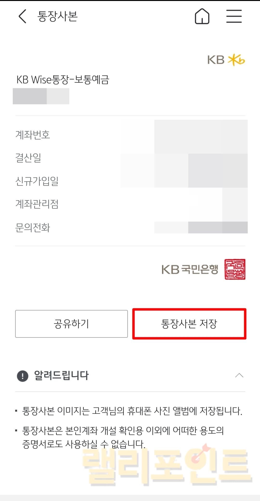 - 갤러리에 국민은행 통장사본이 저장됩니다.