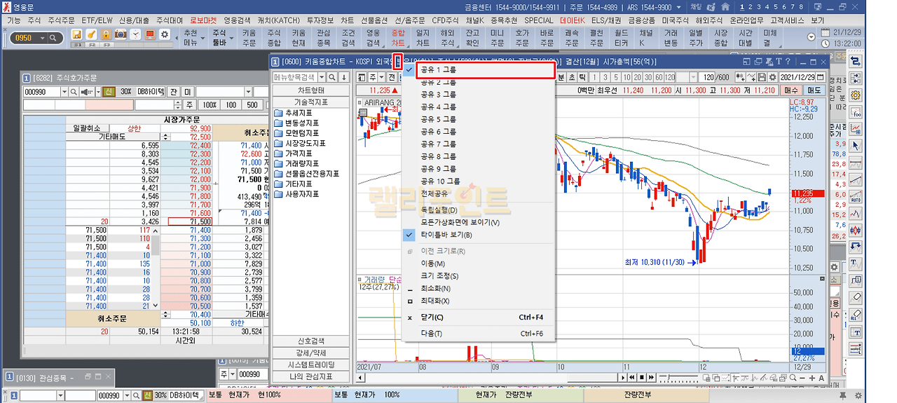 키움증권 HTS 차트 연동하는 방법 (그룹지정, 멀티차트)
