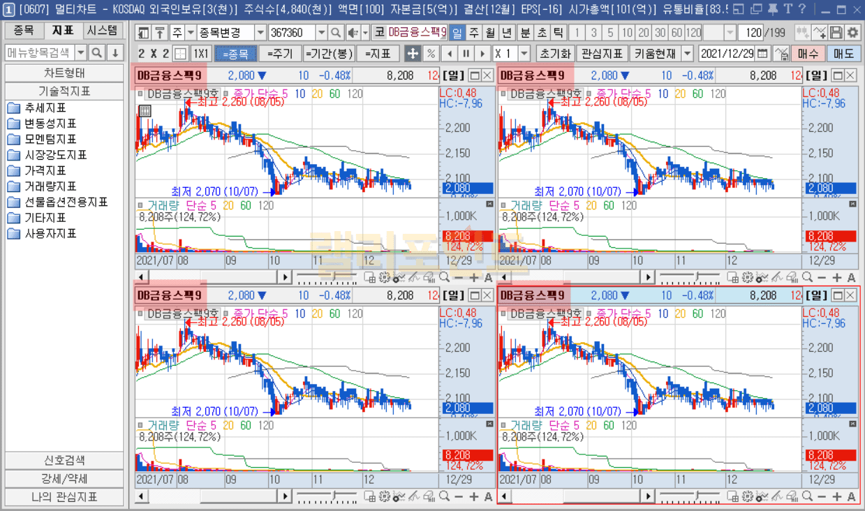 - 멀티차트가 같은 종목으로 연동되어 표시됩니다.