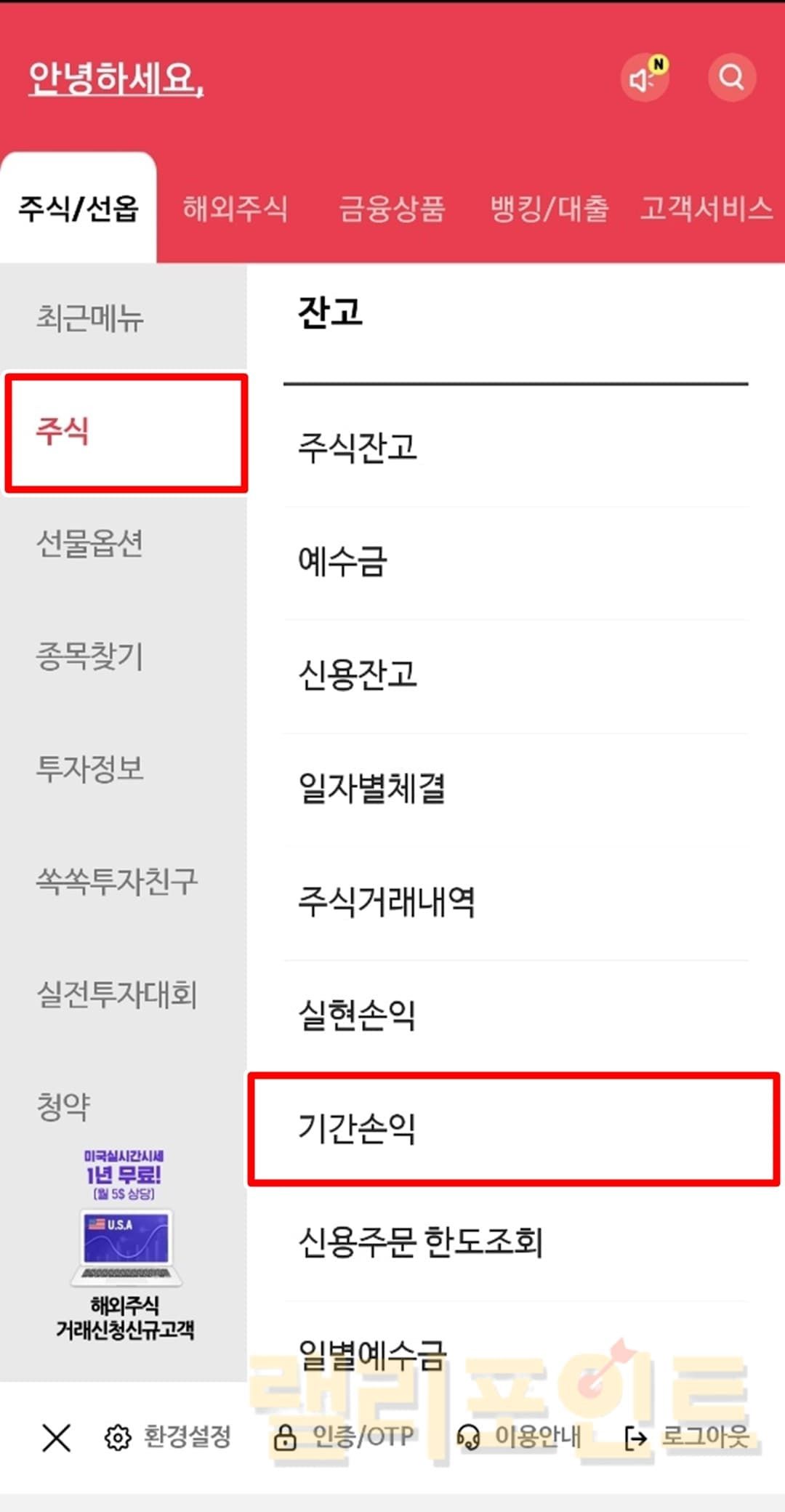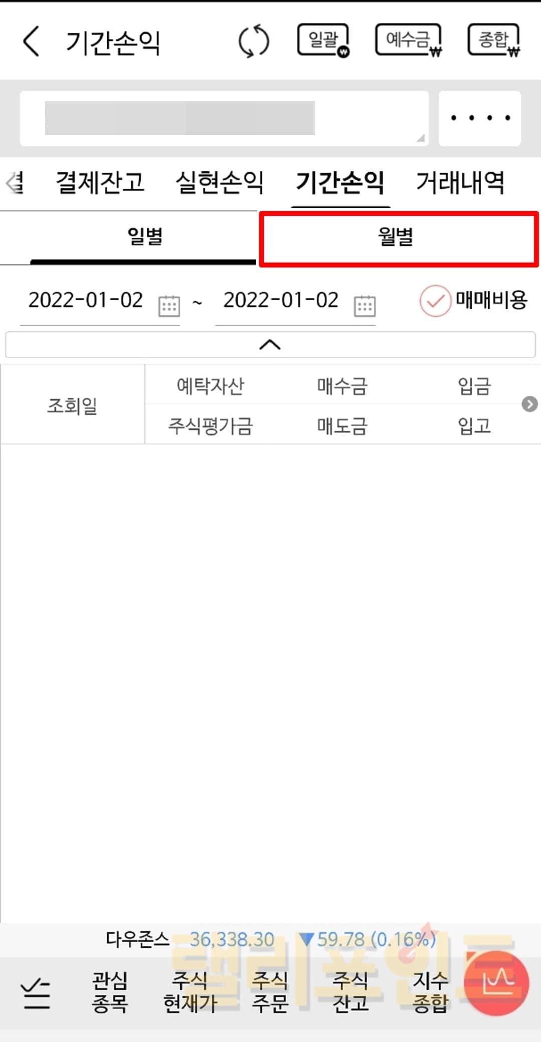 1. 주식 > 기간손익을 선택합니다.