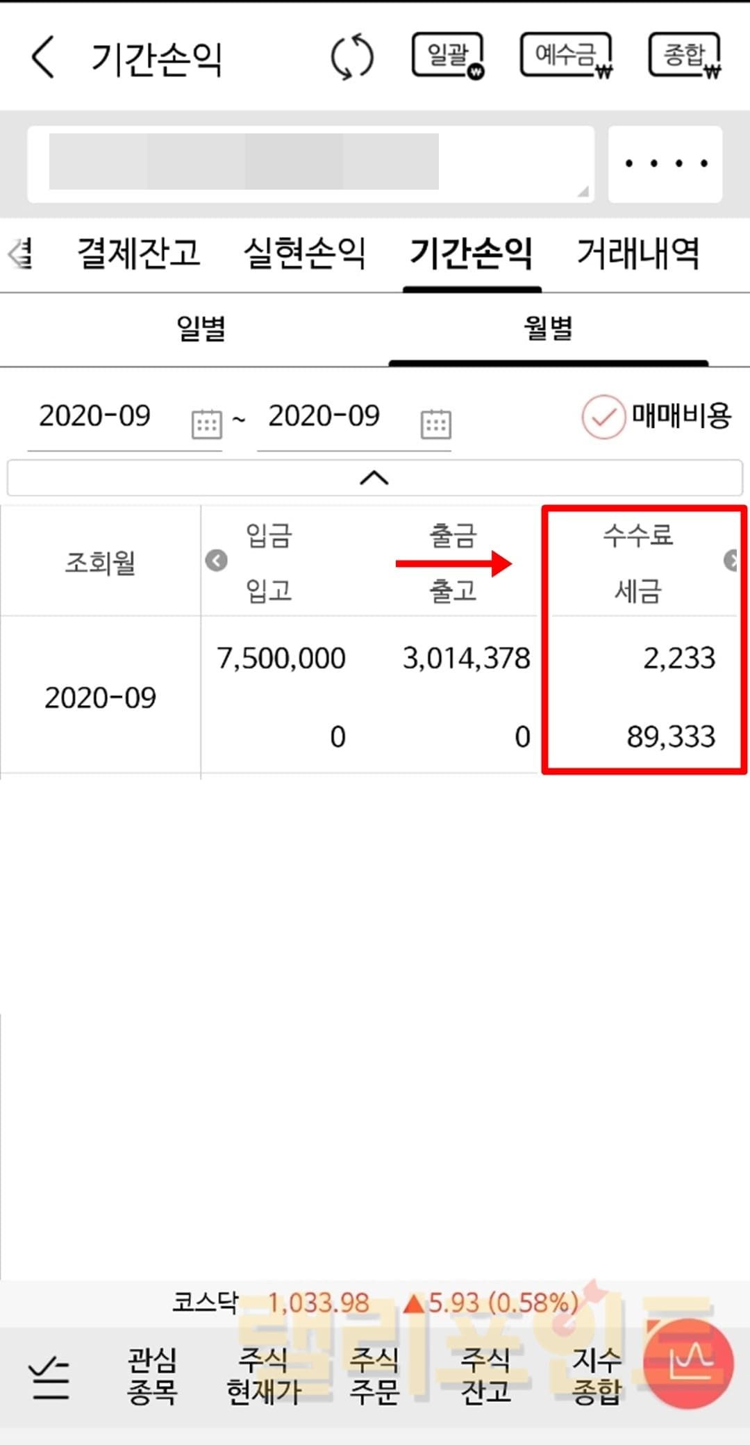 1. 매매수수료 및 세금을 보고 싶은 기간을 설정합니다.