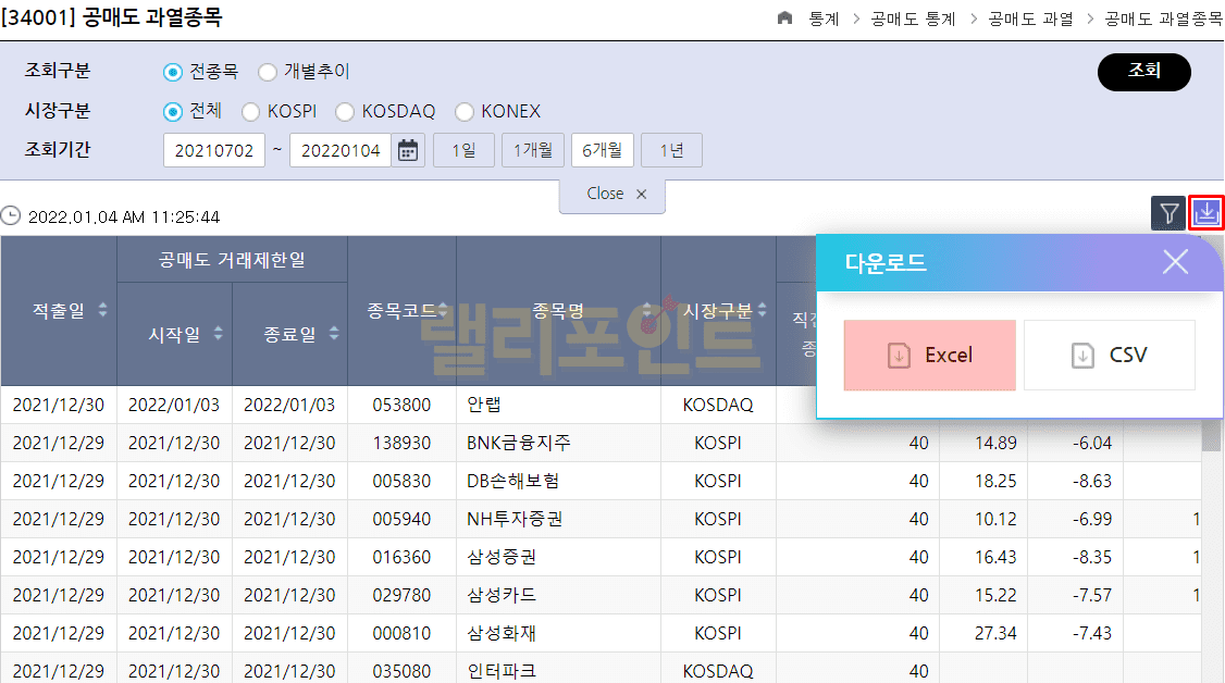 공매도 과열종목 데이터 Excel 저장 가능
