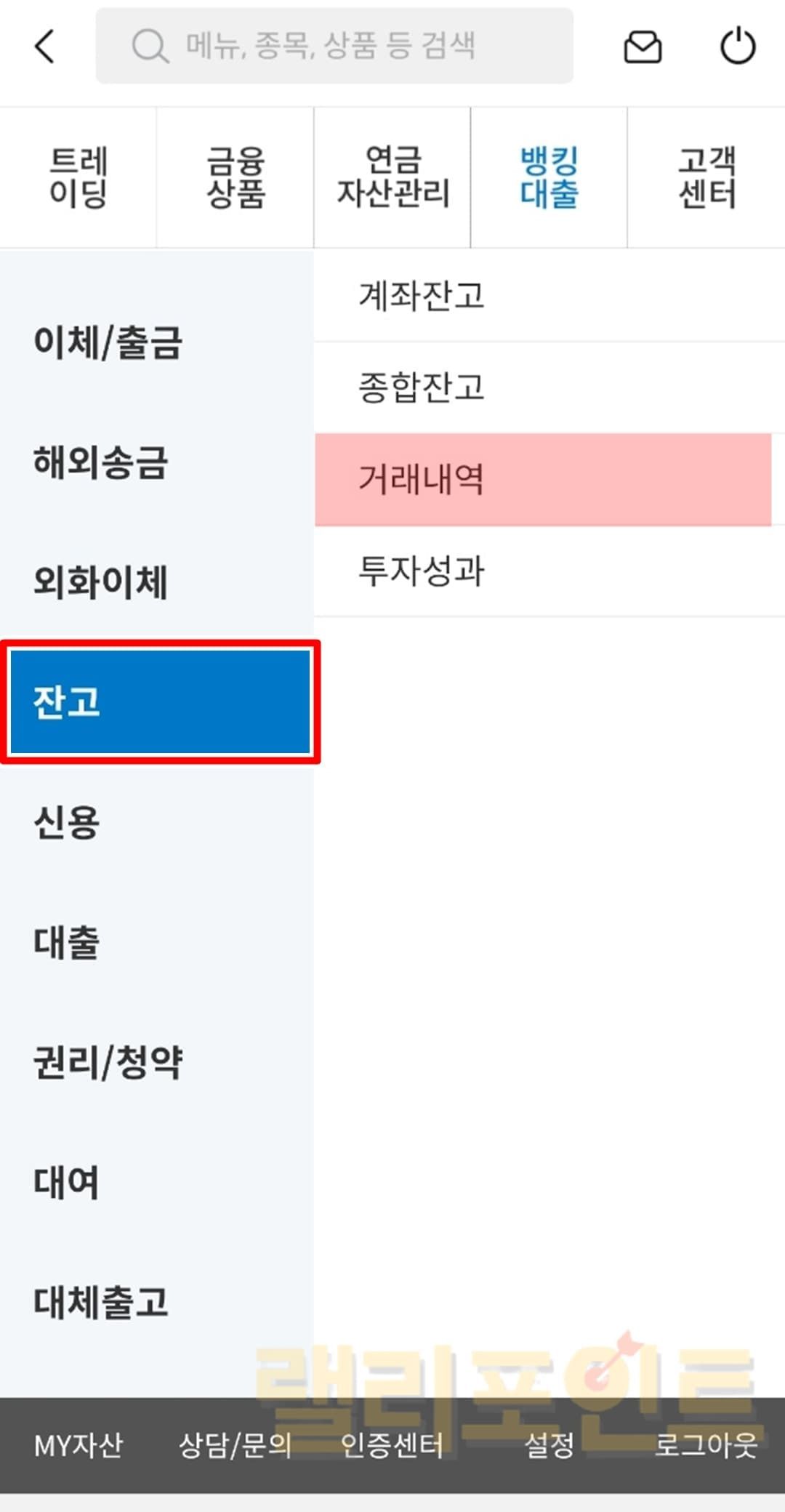 1. 잔고 > 거래내역을 클릭합니다.