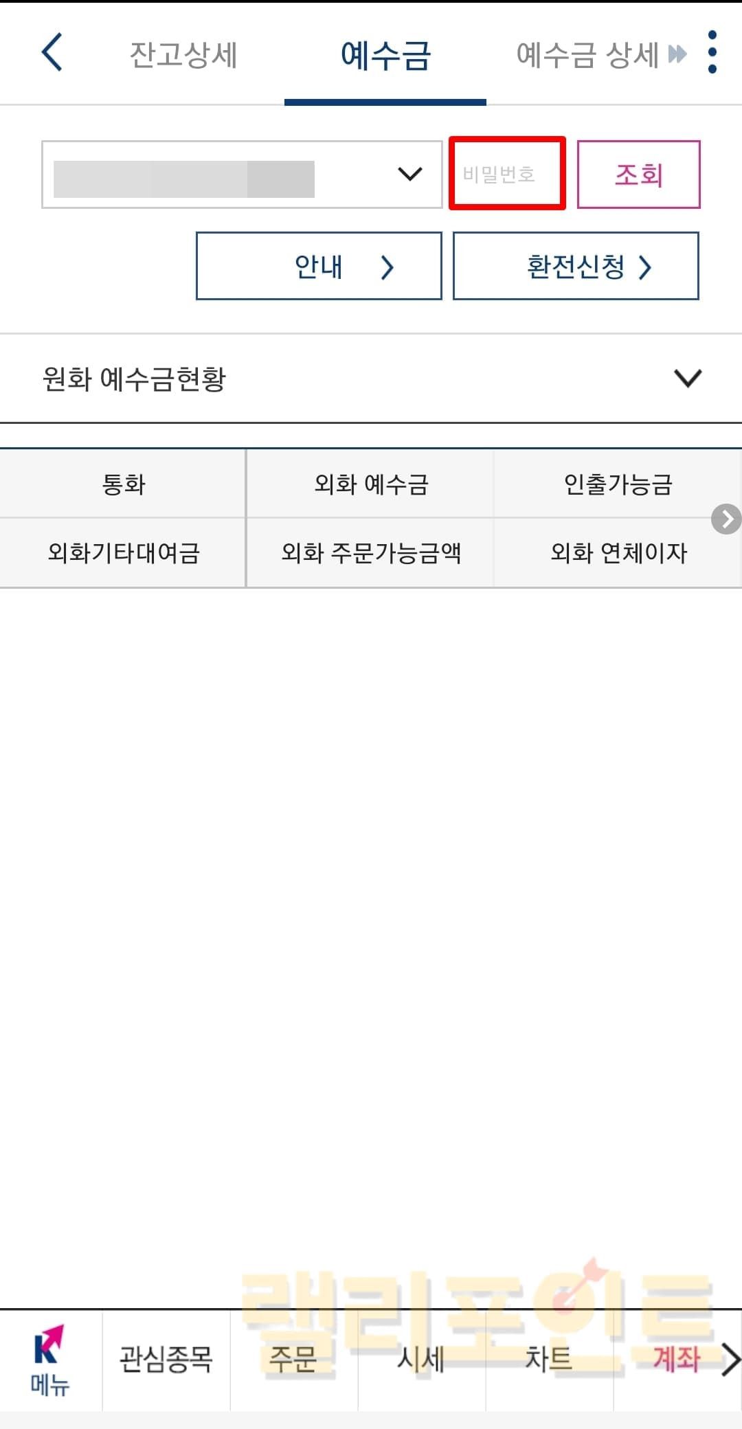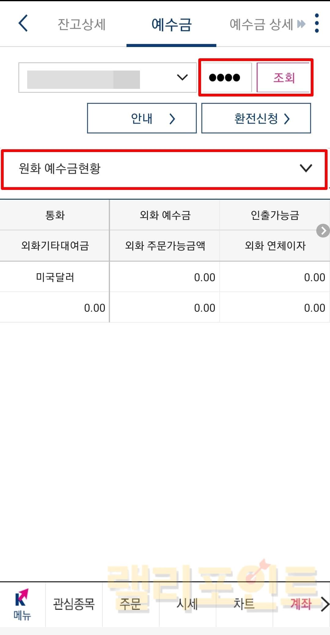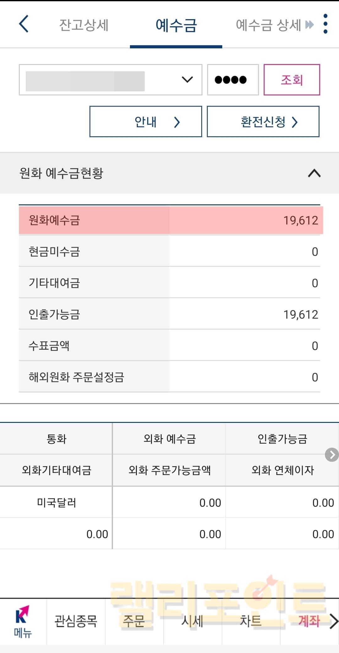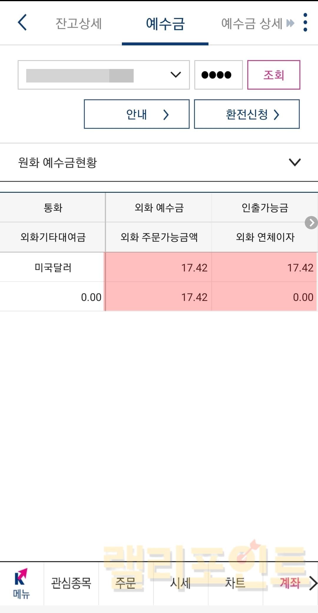 환전된 원화 예수금 확인하는 방법