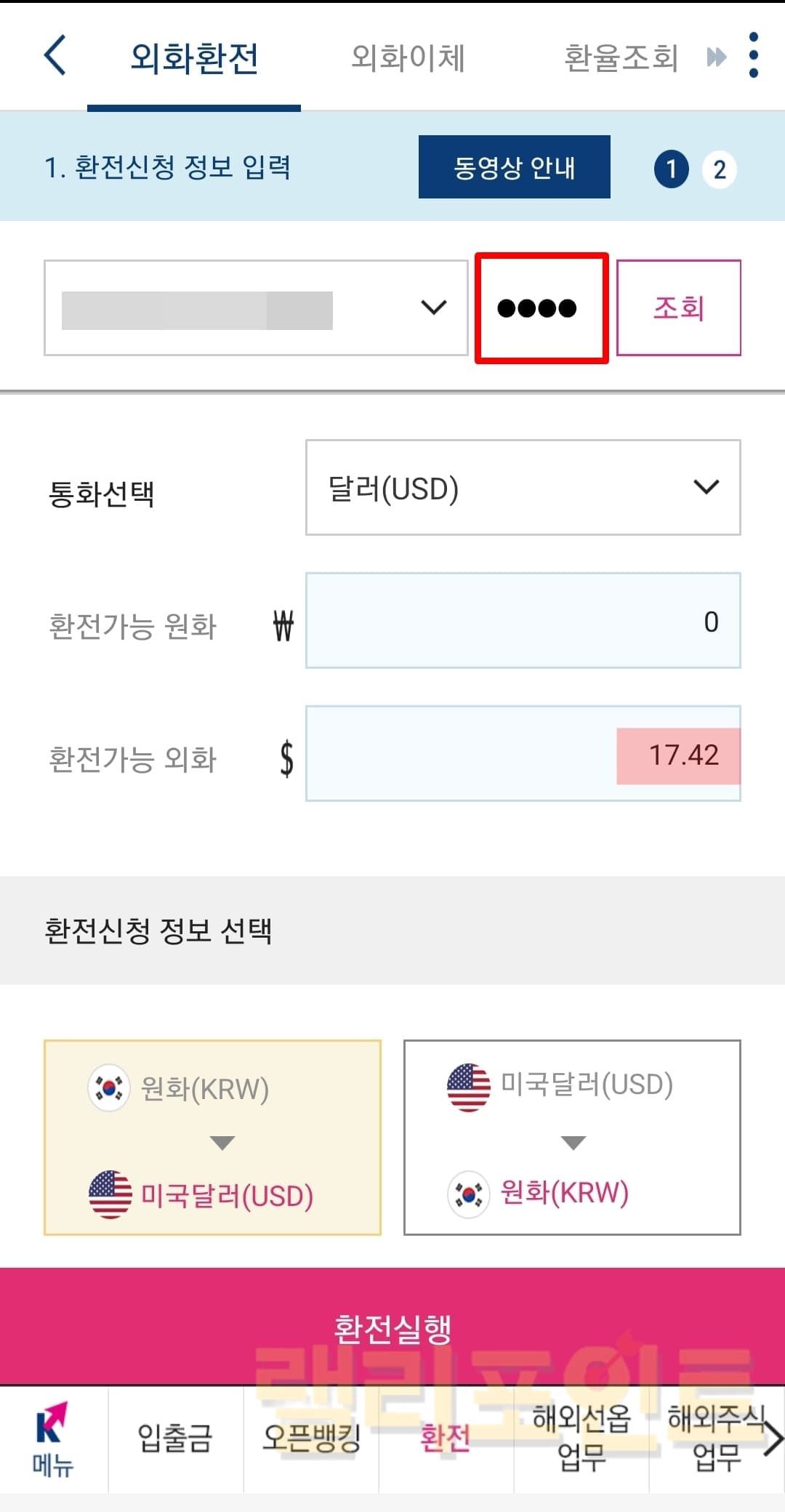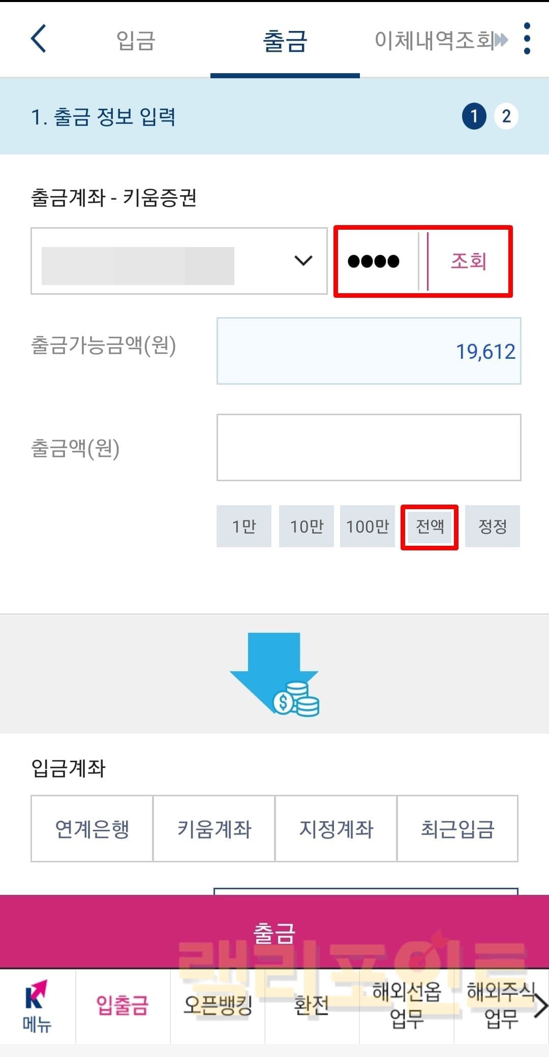 계좌 비밀번호를 입력하고 조회를 클릭합니다.