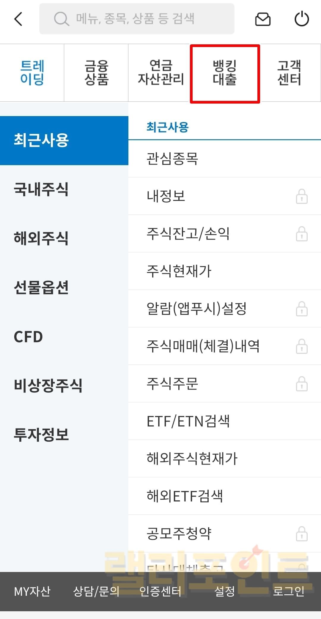 - 뱅킹대출을 누릅니다.
