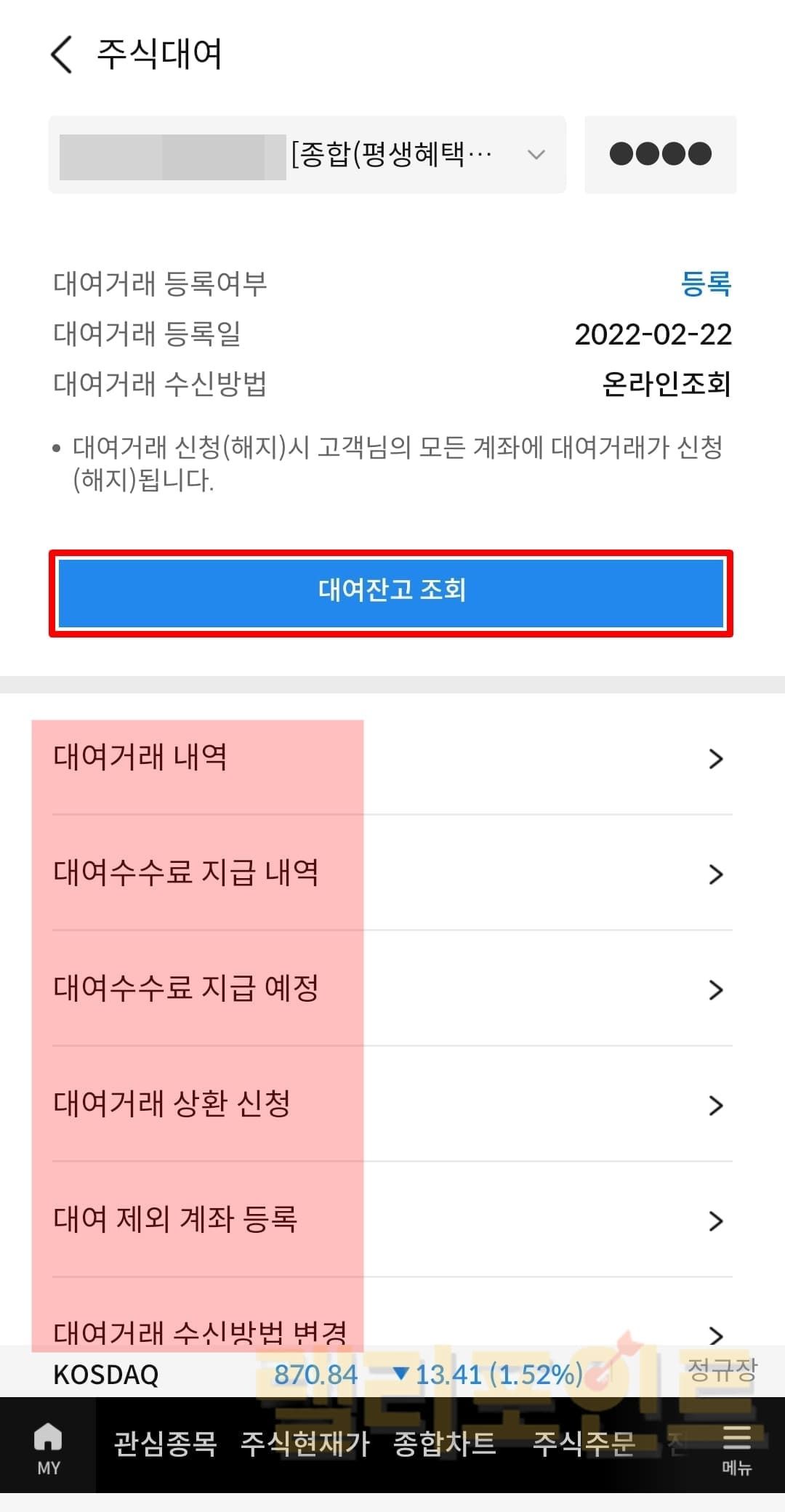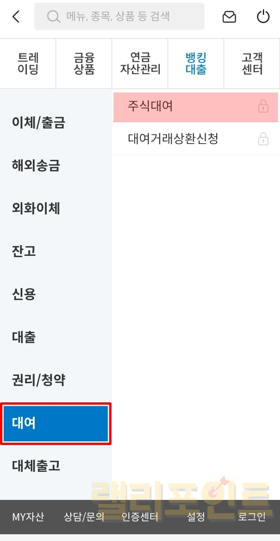 - 대여 카테고리에서 주식대여를 클릭합니다.