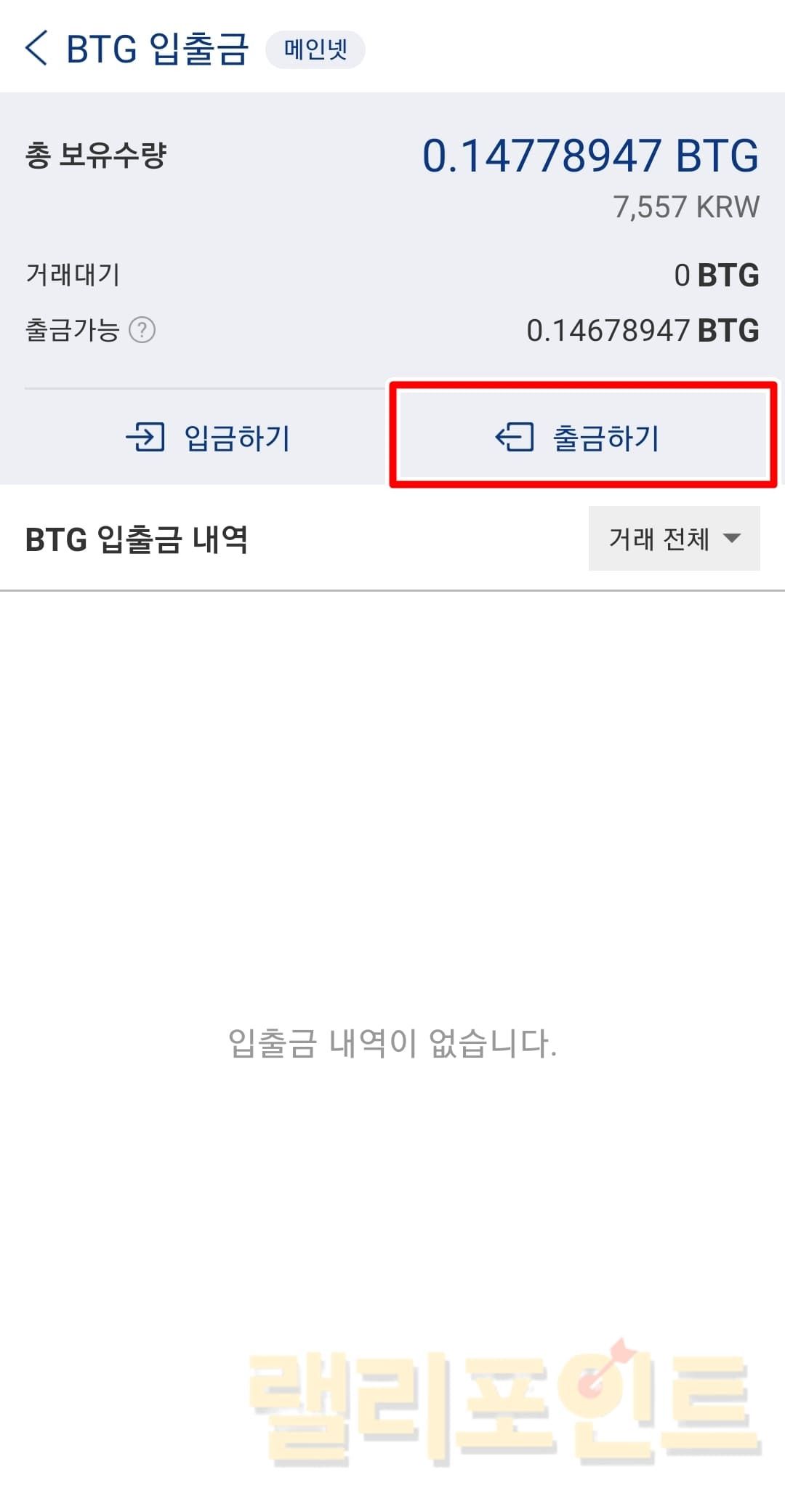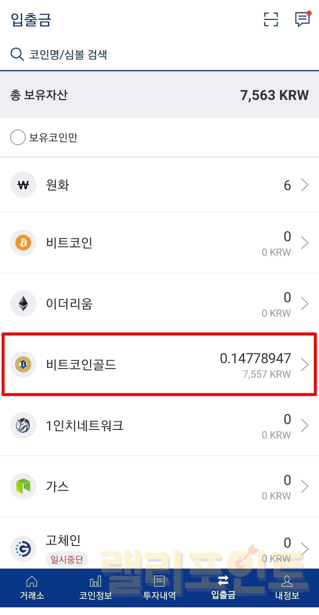 1. 입출금 메뉴에서 출금하고 싶은 코인을 선택합니다.