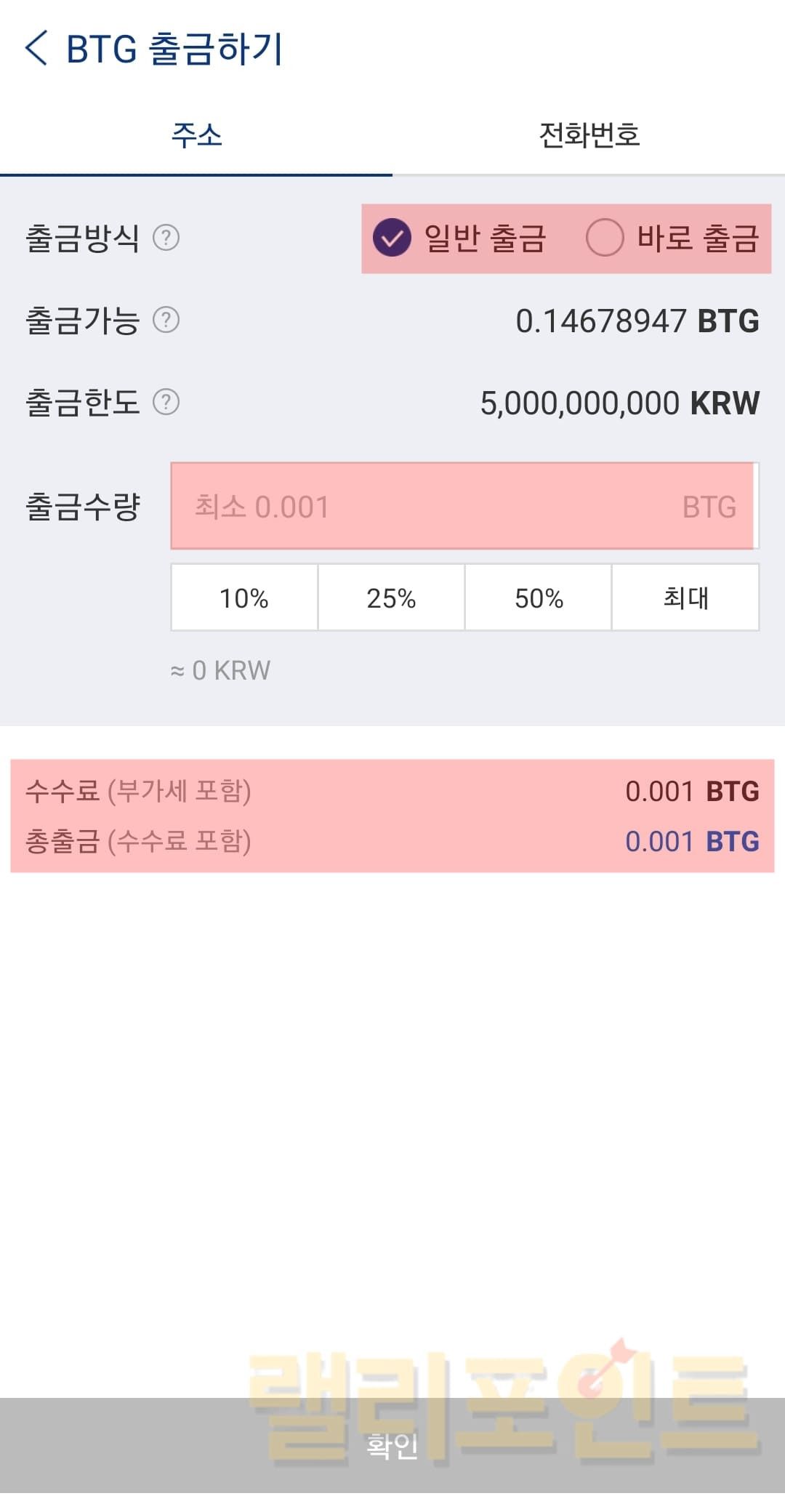 일반출금: 일반출금은 블록체인을 이용한 출금 방식으로 송금 내역이 블록체인에 기록됩니다.