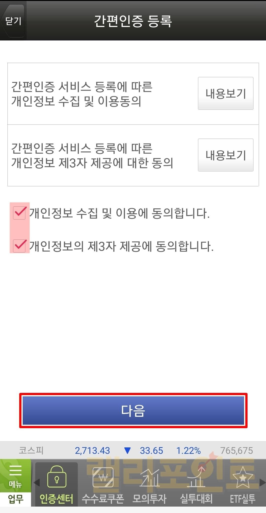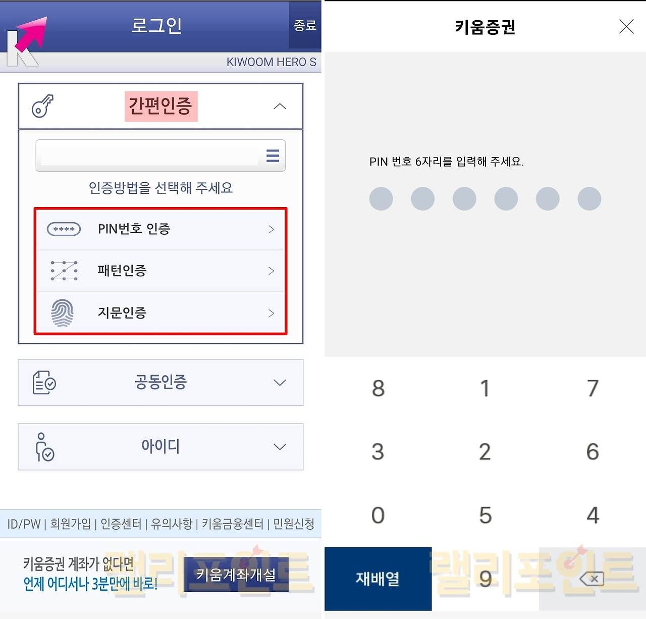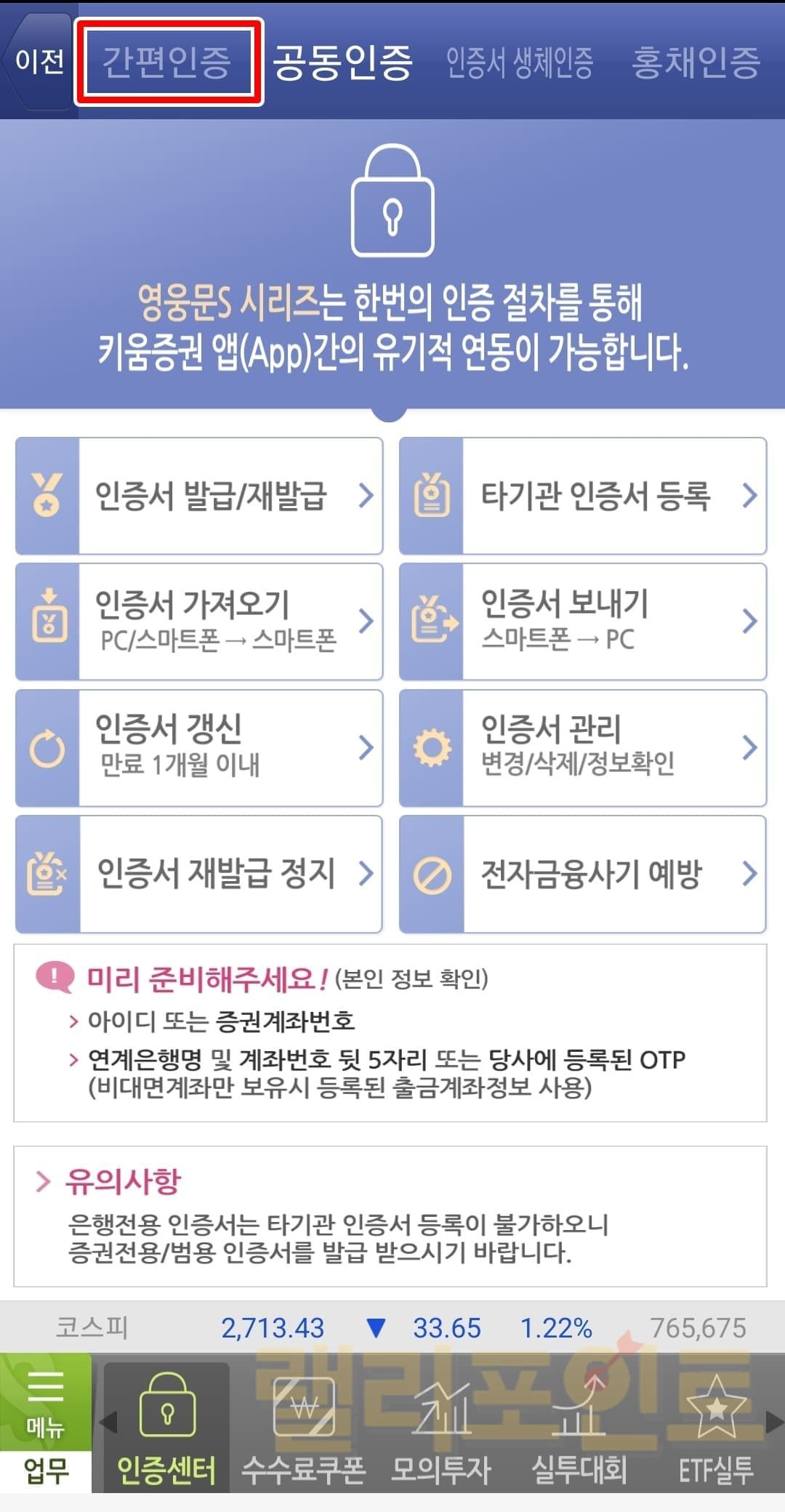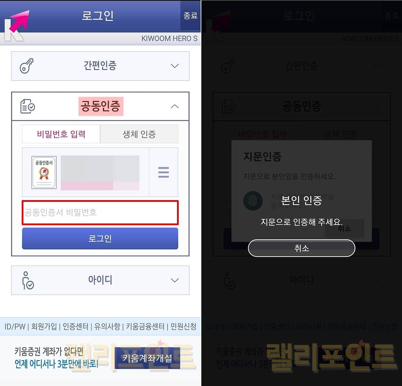 키움증권 영웅문S 간편인증, 지문인증 사용 방법