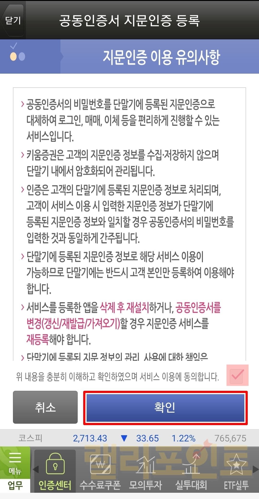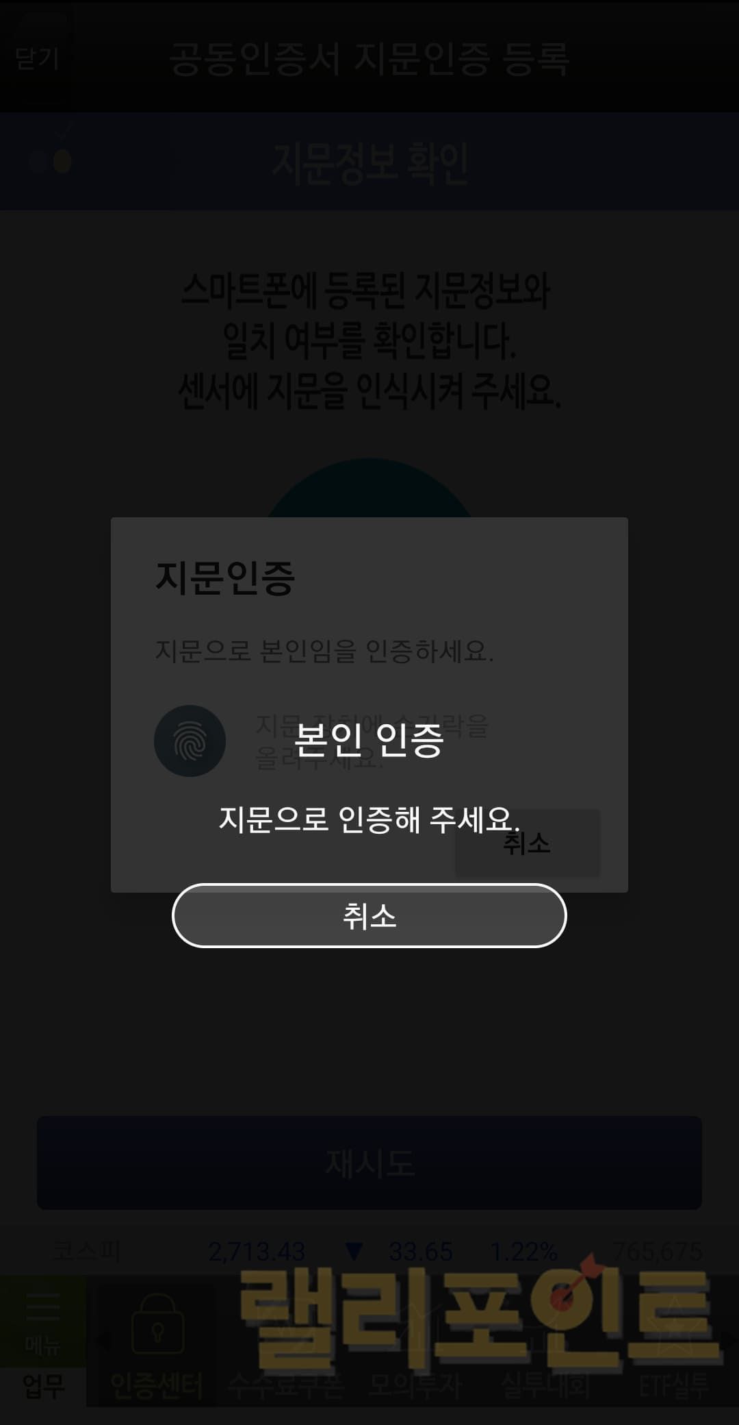 - 키움증권 영웅문 지문인증이 등록되었습니다.