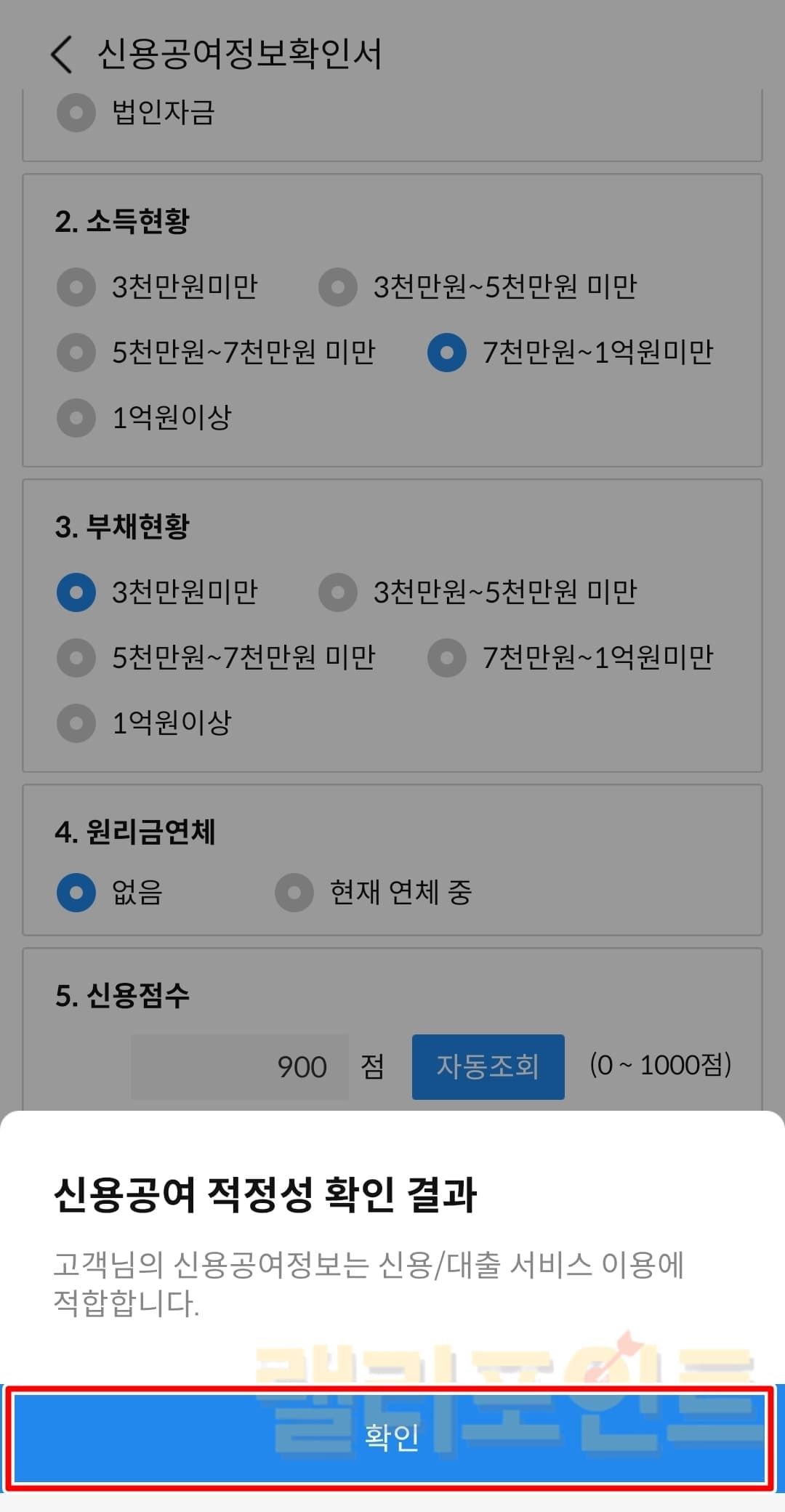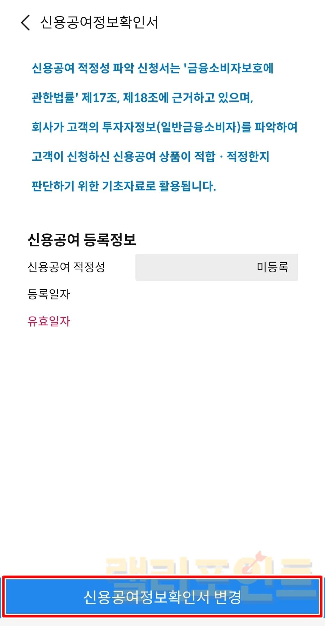 1. 신용공여정보확인서 변경을 클릭합니다.