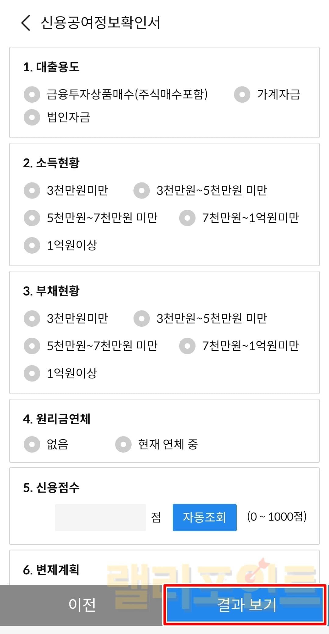 1. 나의 금융정보에 따라 문항을 기입합니다.