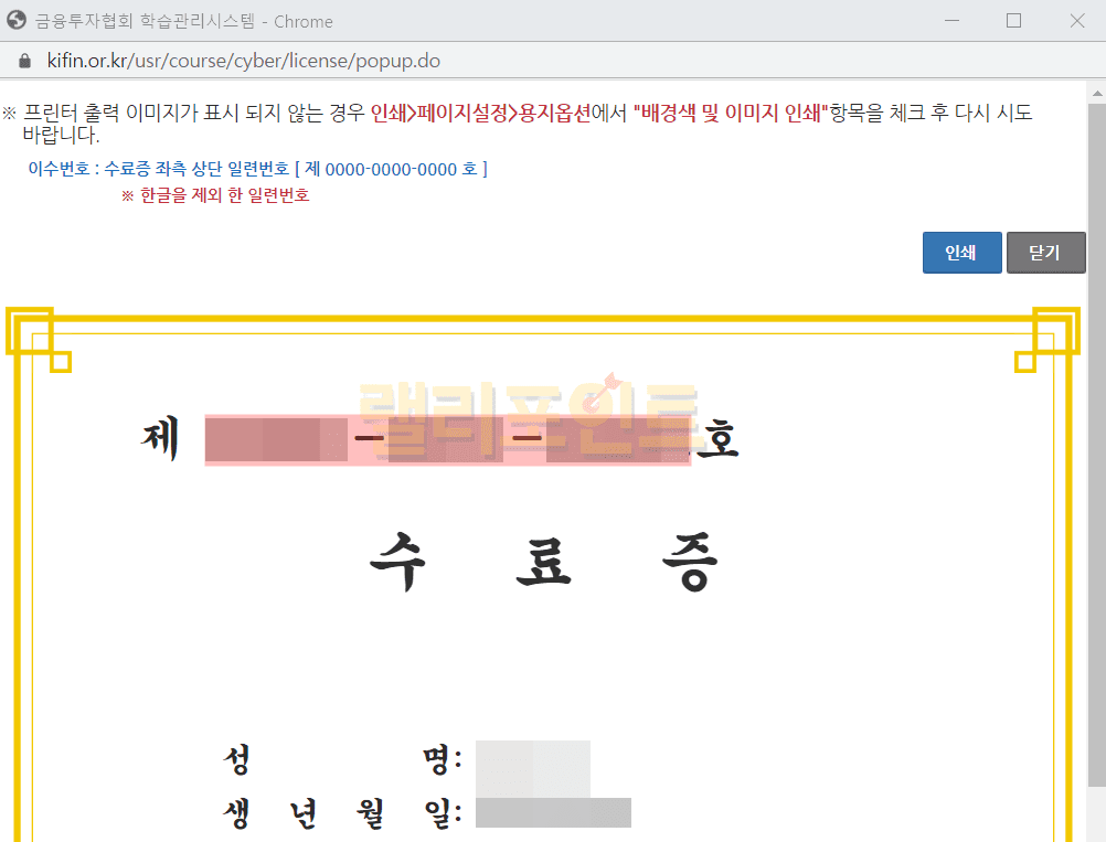개인 공매도 의무교육이수번호는 금융투자협회 수료증에서 제 0000-0000-0000 호에서 확인할 수 있습니다. 한글을 제외한 일련번호를 기입하시면 됩니다.