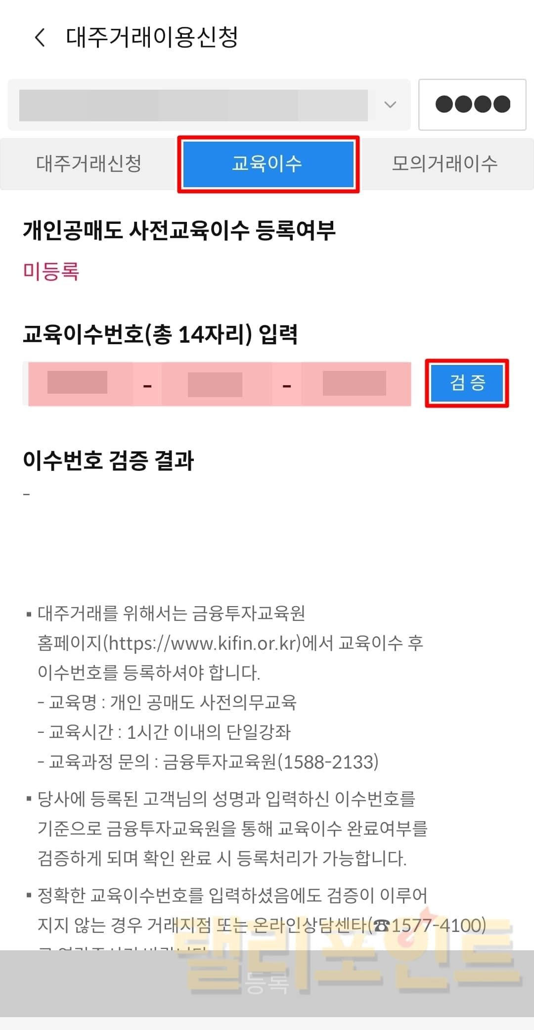 개인 공매도 교육이수번호 등록하기