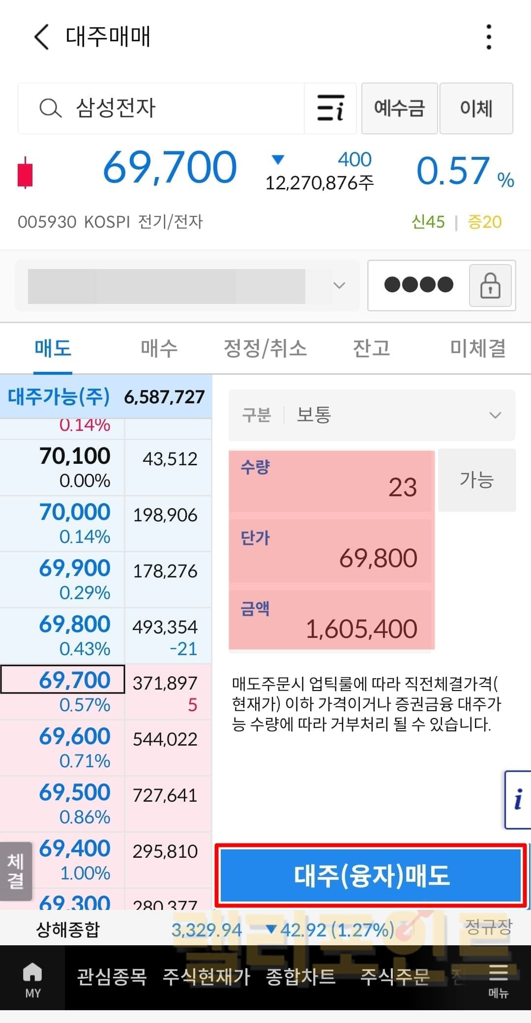대주(융자)매도를 누릅니다.