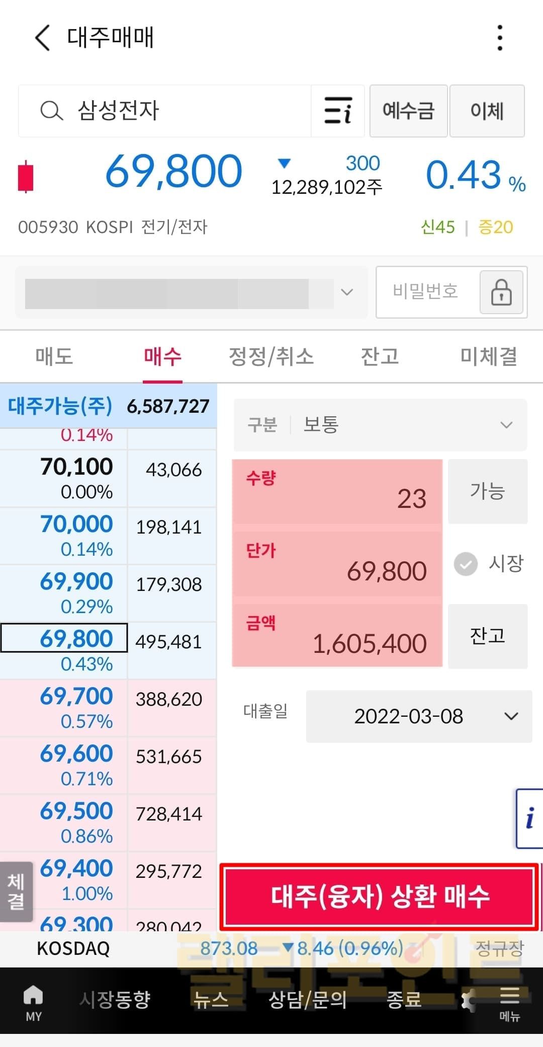 대주(융자)상환 매수를 누릅니다.
