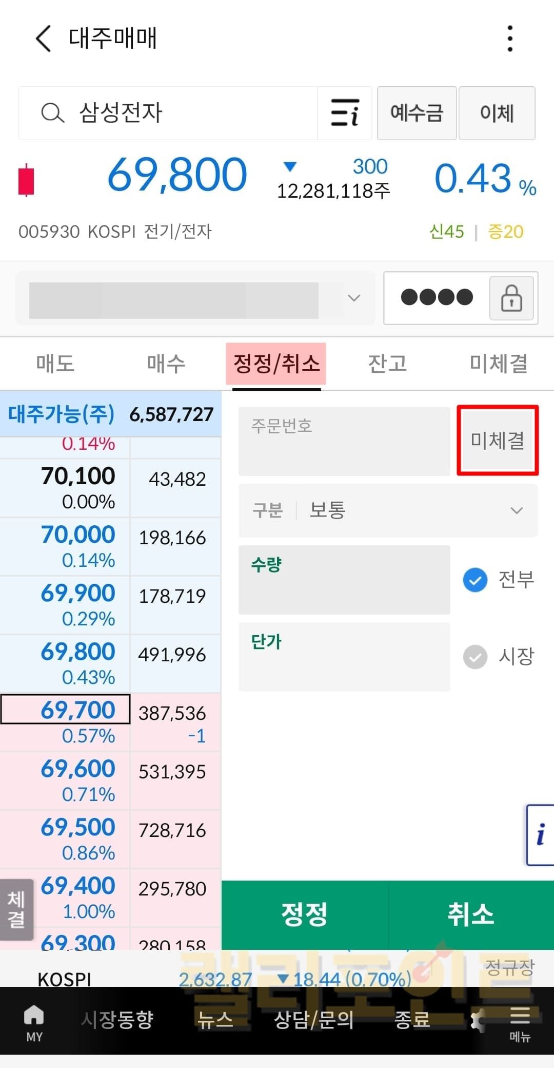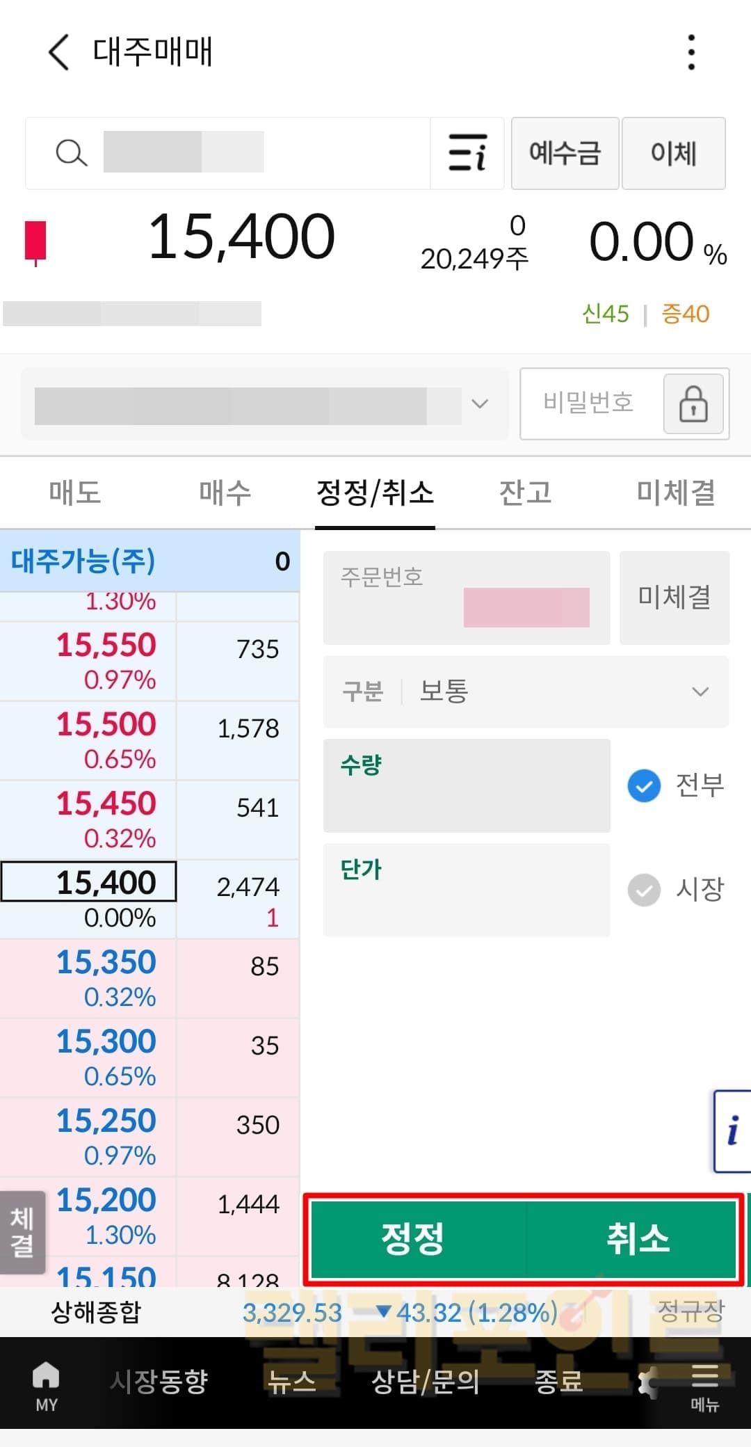 공매도 미체결 주문 정정 및 취소하기