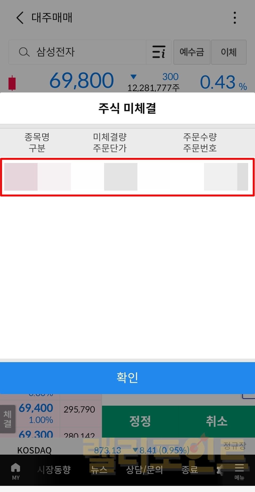 1. 대주매매 화면에서 미체결 버튼을 누릅니다.