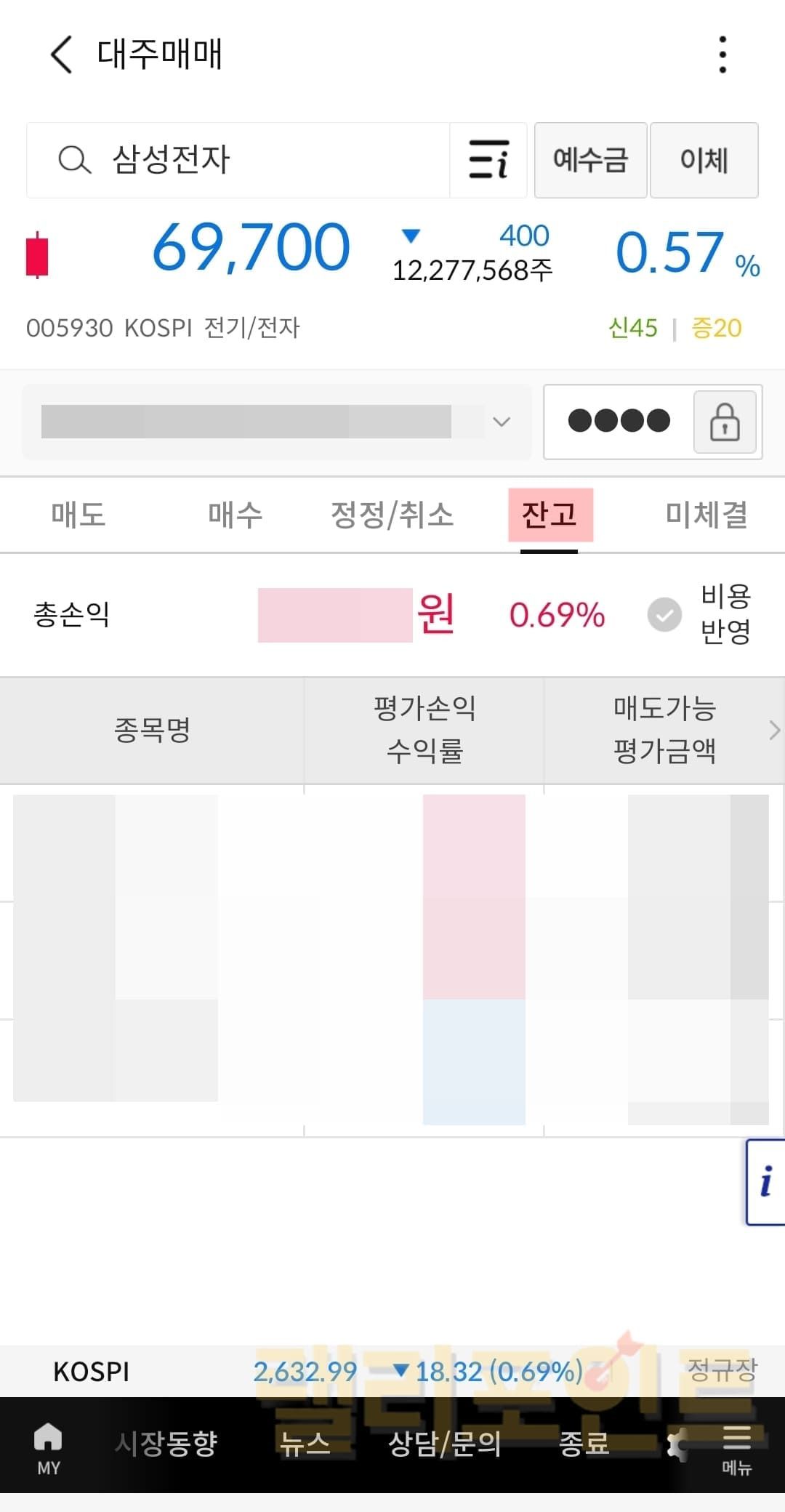 수량이 0으로 표기된 종목은 대주매도가 불가능합니다.