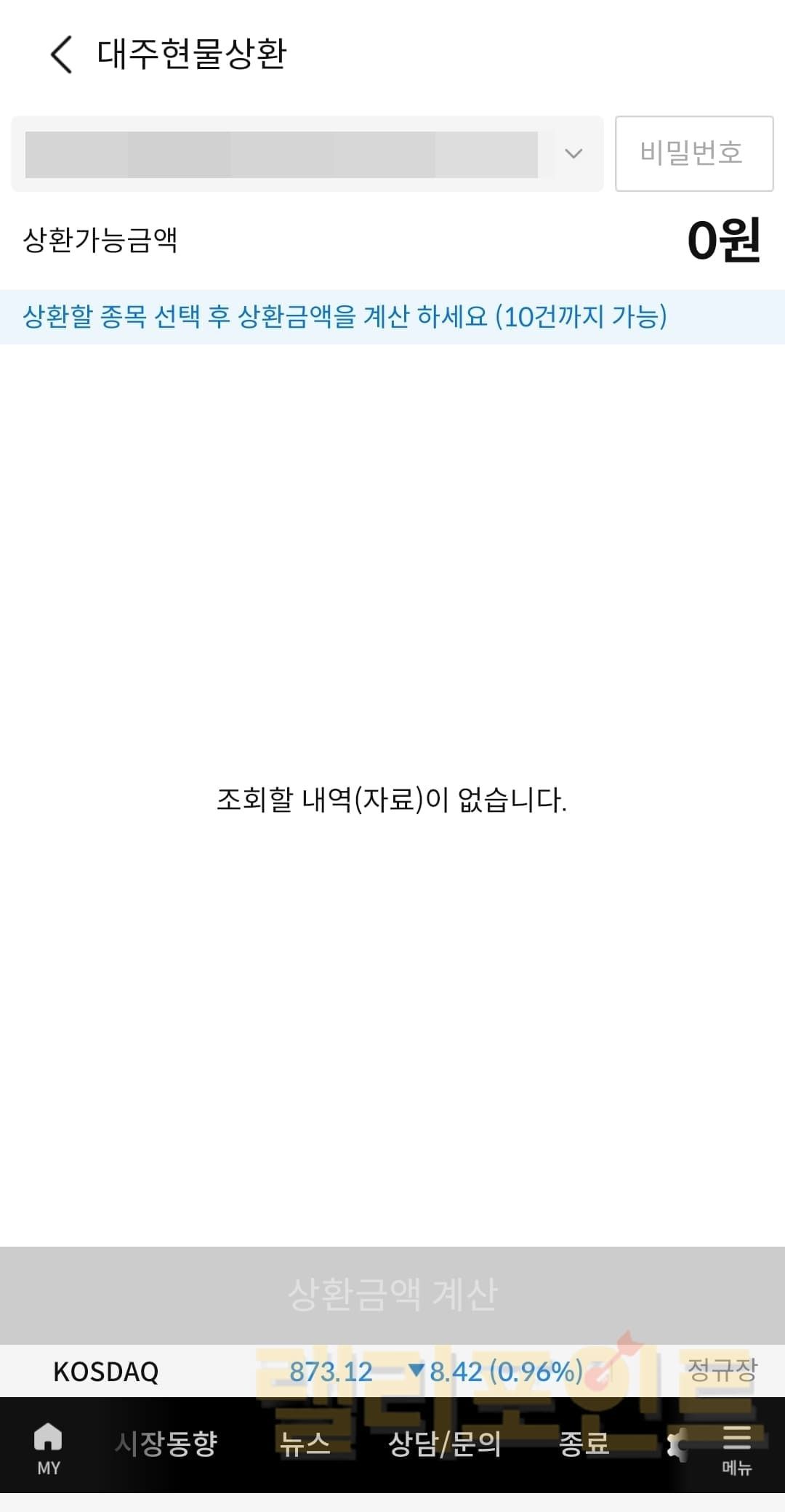 2. 대주현물상환을 클릭합니다.