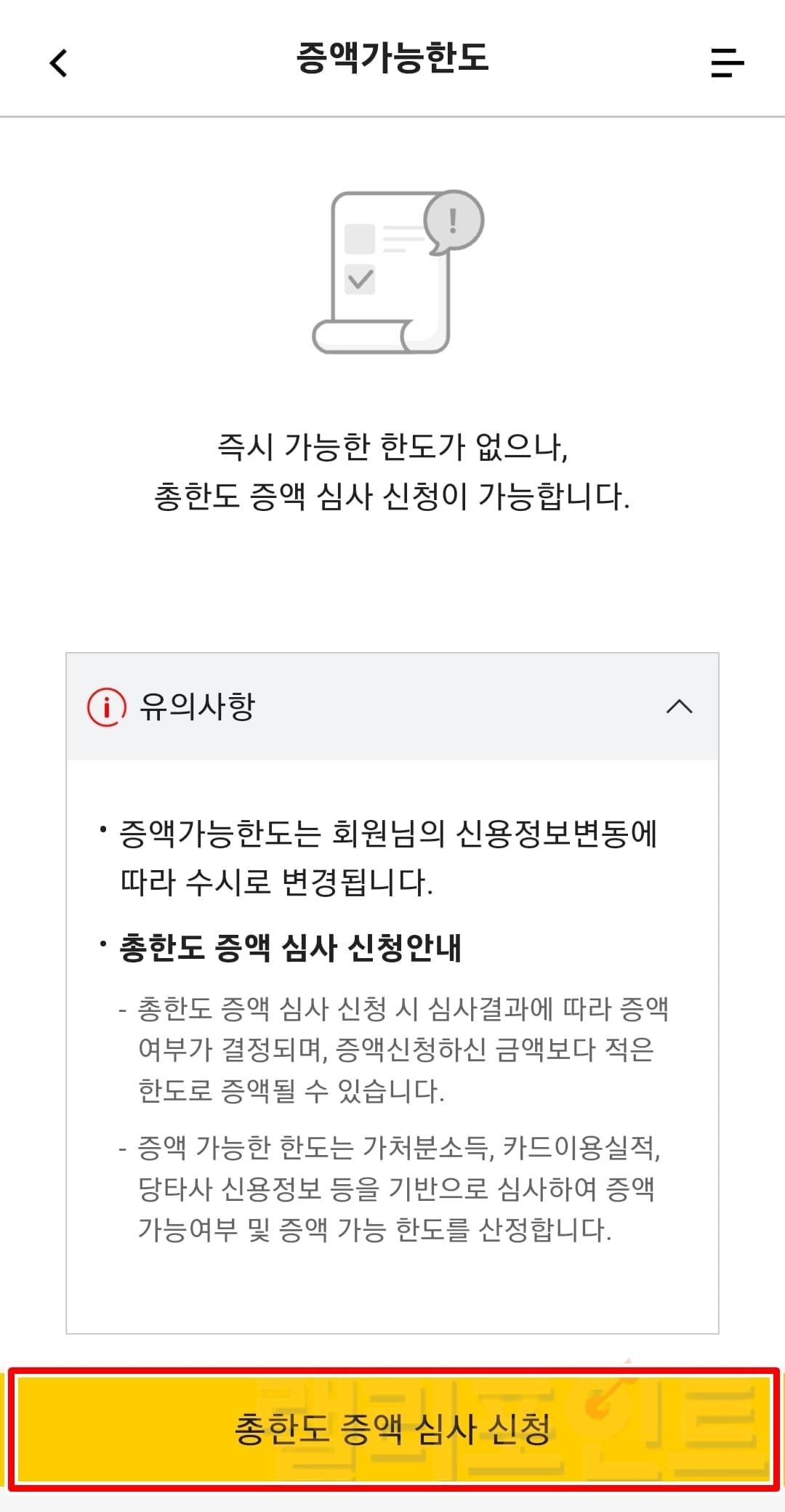 심사결과에 따라서 신청한 증액 한도보다 적은 금액으로 한도가 증액될 수 있습니다.