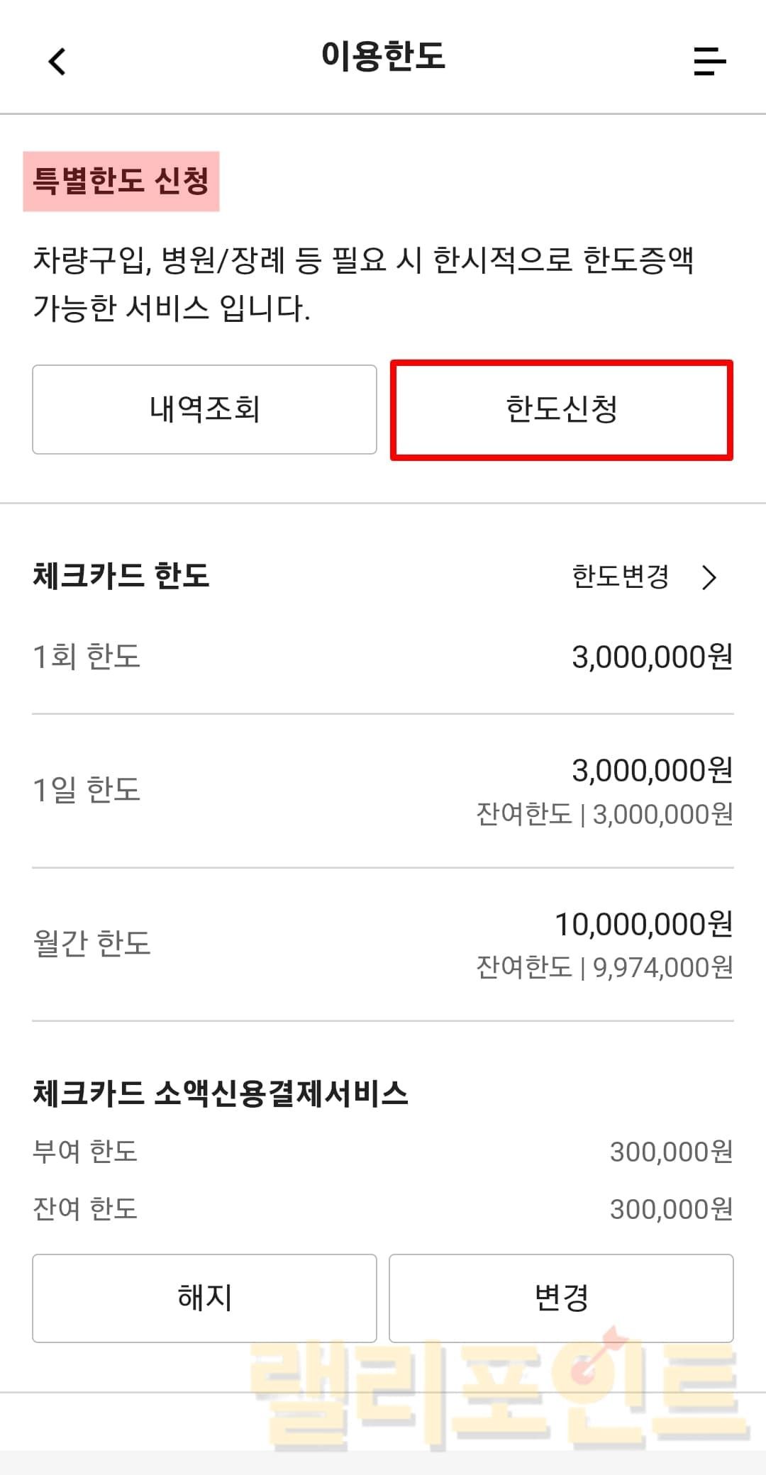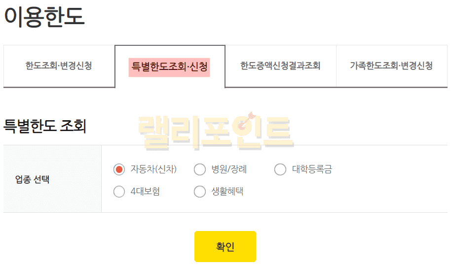 특별한한도 조회 및 신청하기