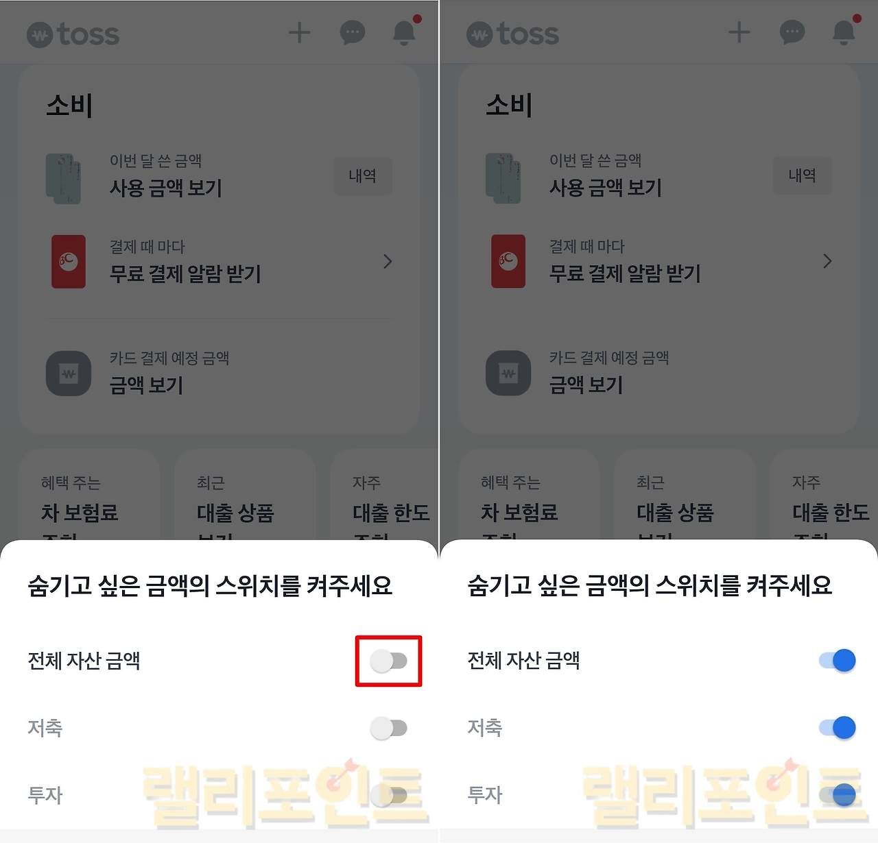 토스 계좌 잔액 안보이게 숨기기 2가지 방법 (전체 / 개별)